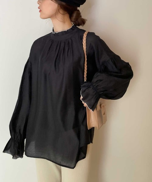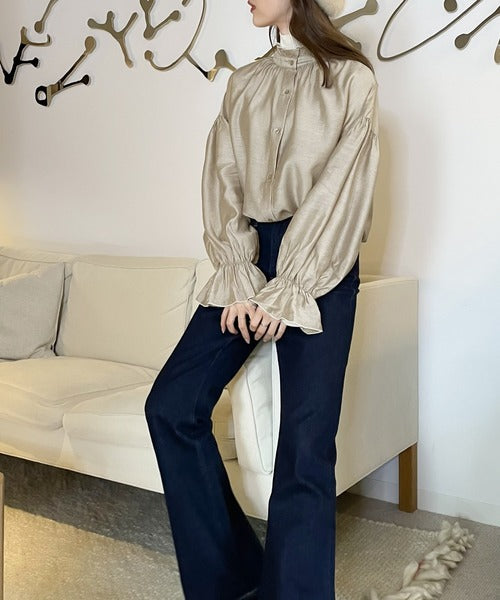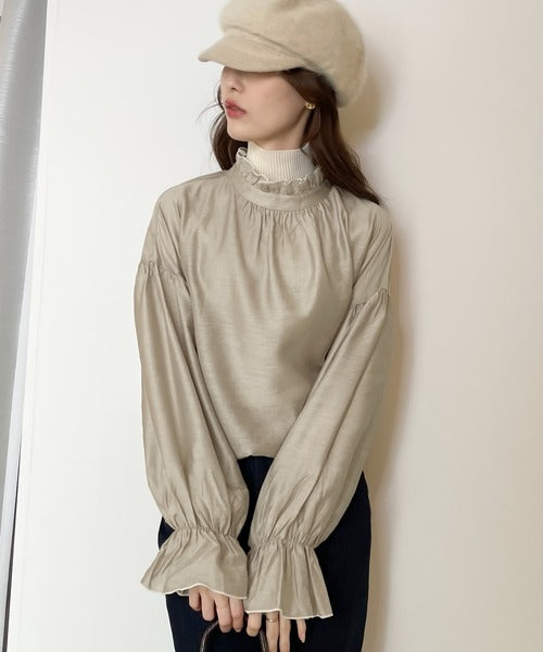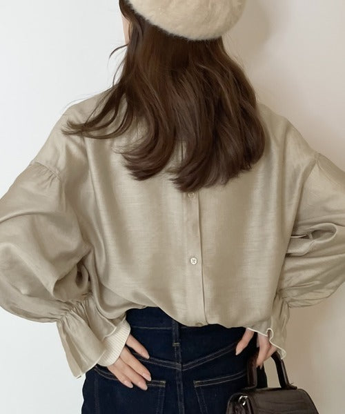 甘めディティールながらも、上品な素材感で大人っぽく着られる華やかブラウスです。