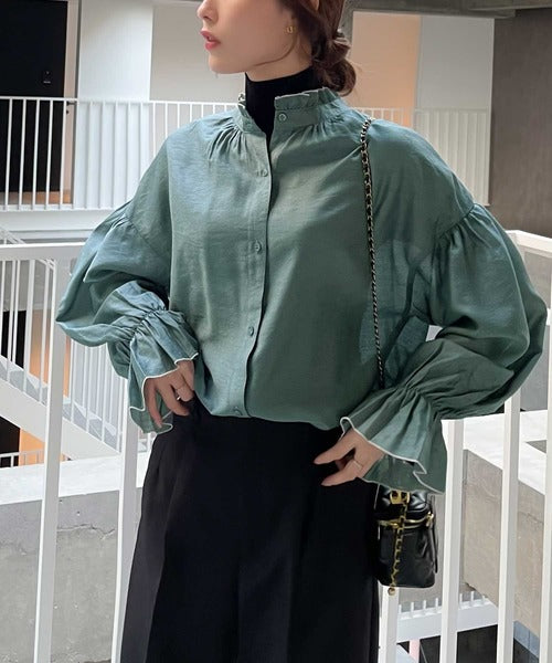上品魅えのフリルカラーに加え、女性らしいキャンディスリーブ。