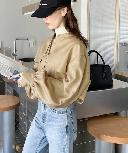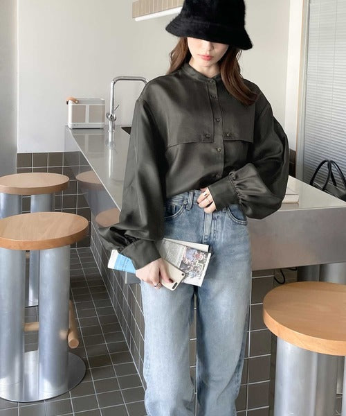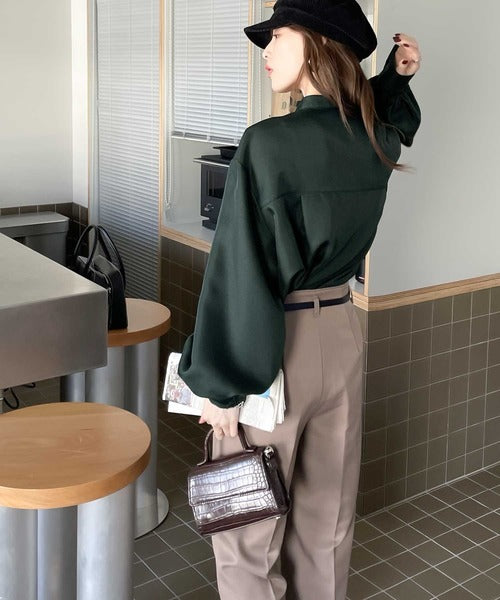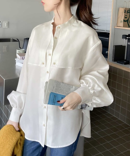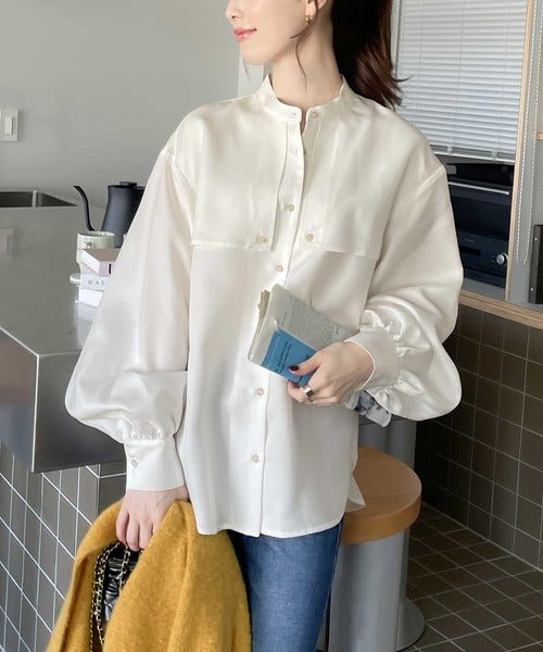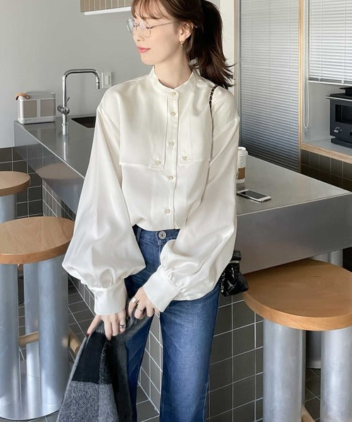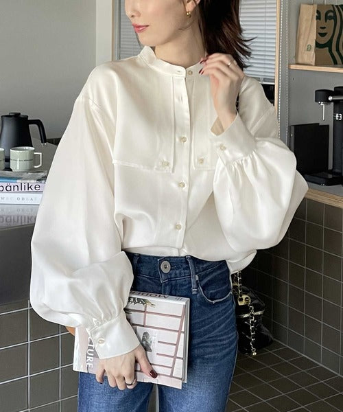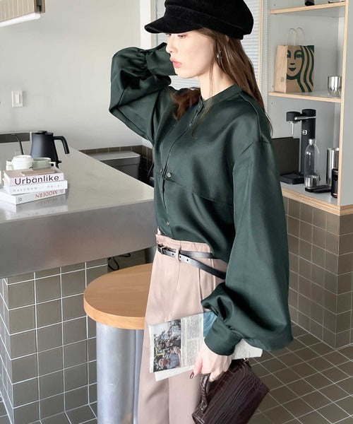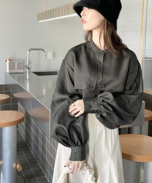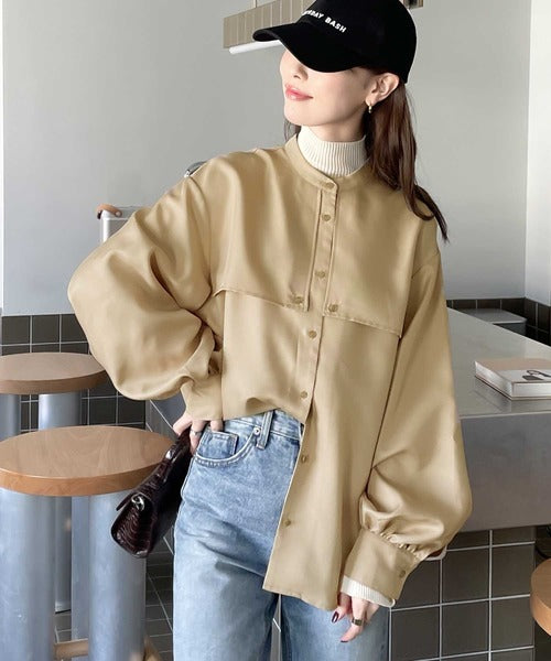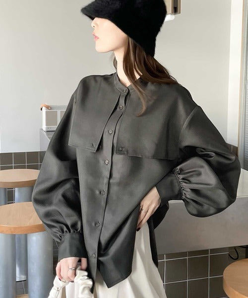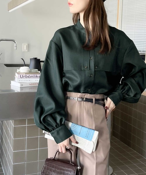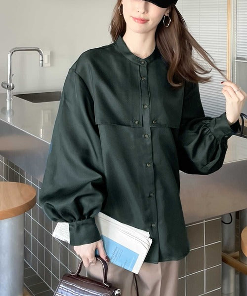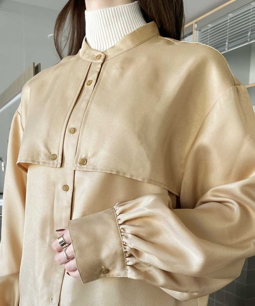 1枚でレディ映え。艶やかバンドカラーケープブラウス ce1110011