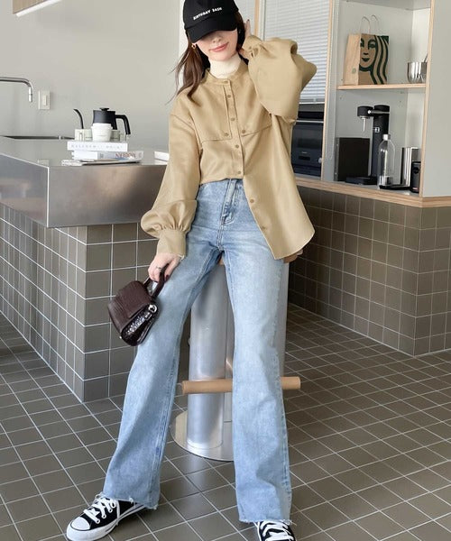 滑らかな落ち感がある素材なので、カジュアルに外したデニムコーデもバランス良くキマる◎