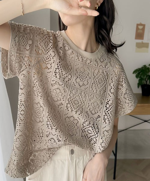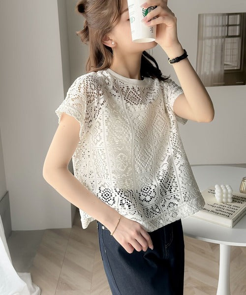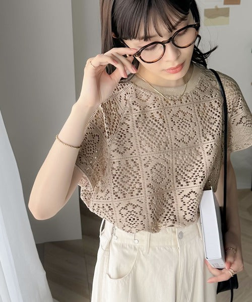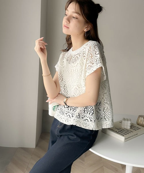 カジュアルな可愛さ。ショートスリーブレーストップス ce1110035