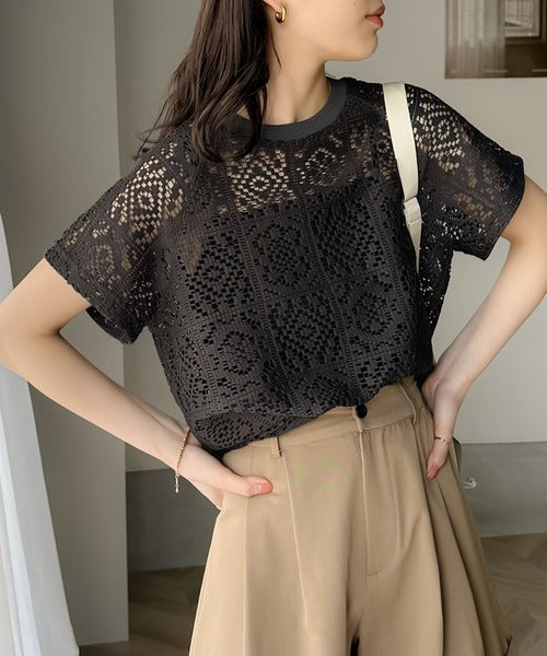 レースをカジュアルダウンさせてくれてコーデしやすい1枚に。