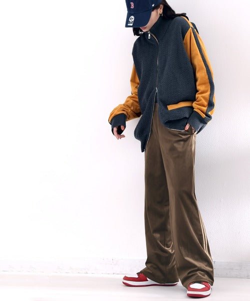 ゆったりシルエットとサイドラインがポイントの