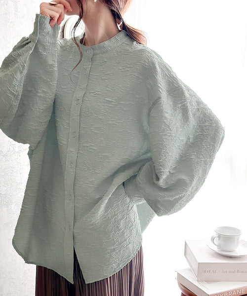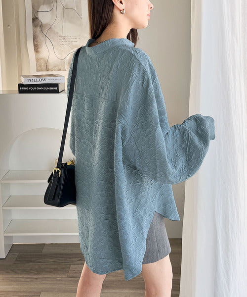 大人映えシルエット。ニットジャガード バルーンスリーブビッグシャツ ce1110048