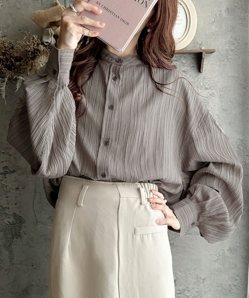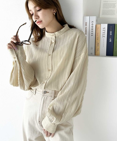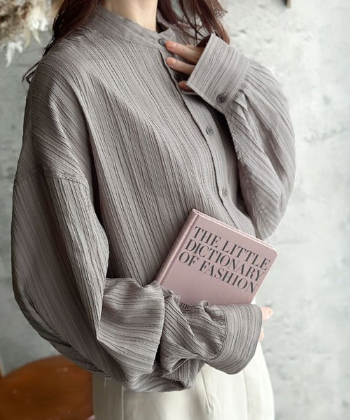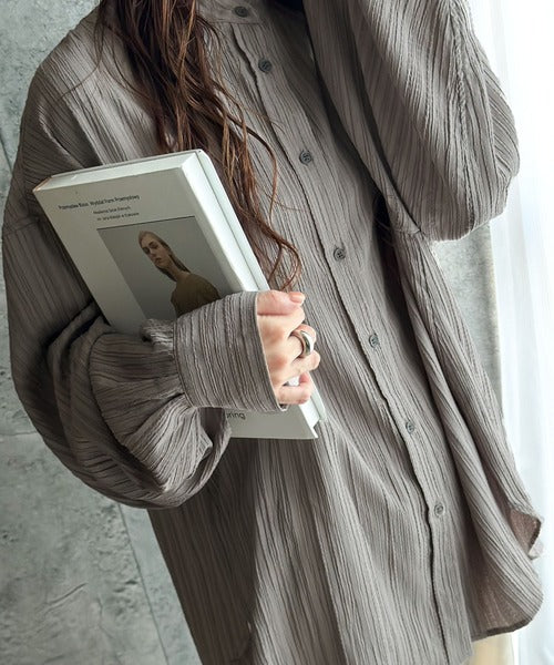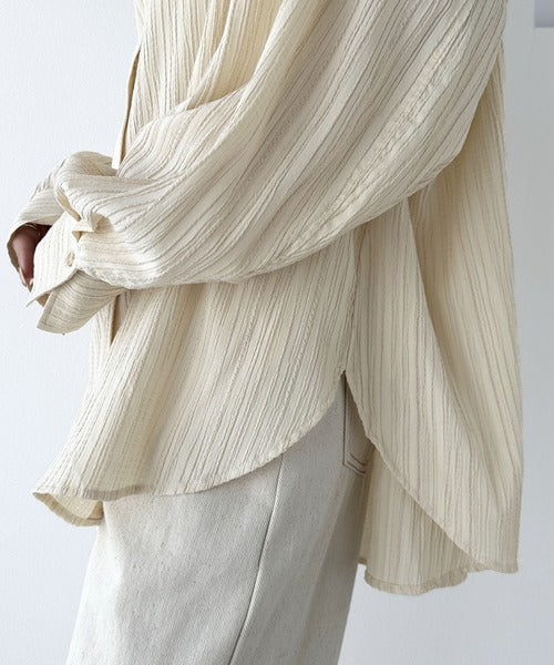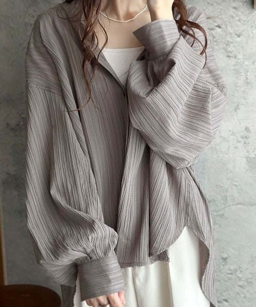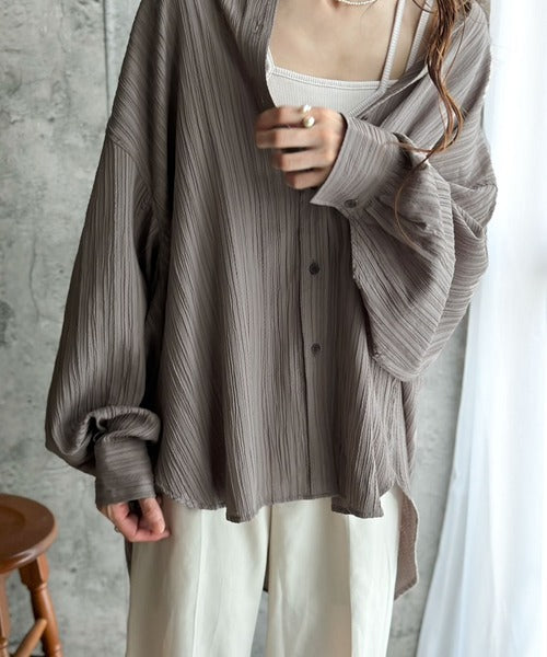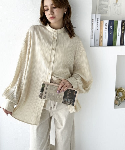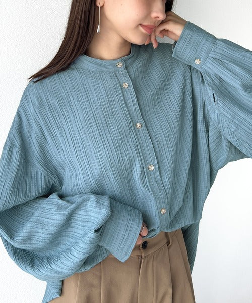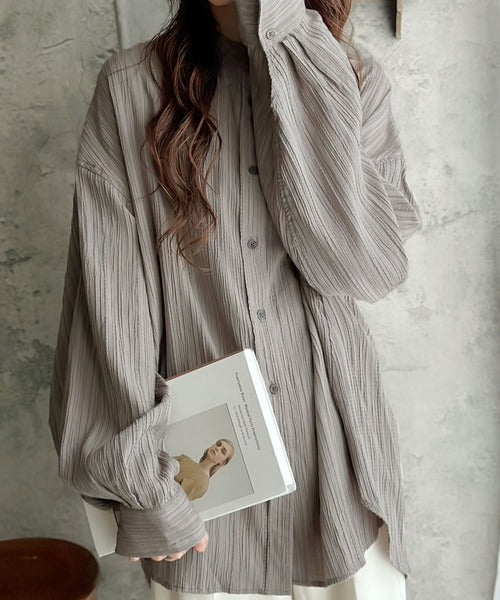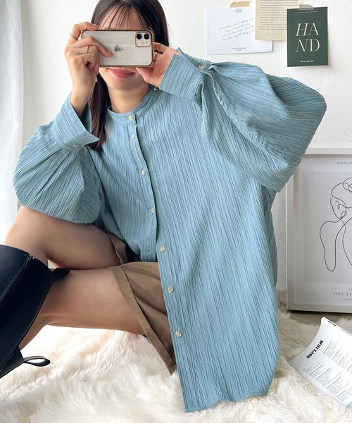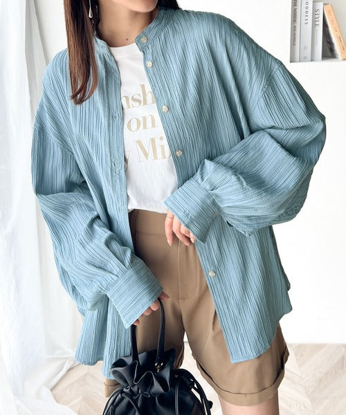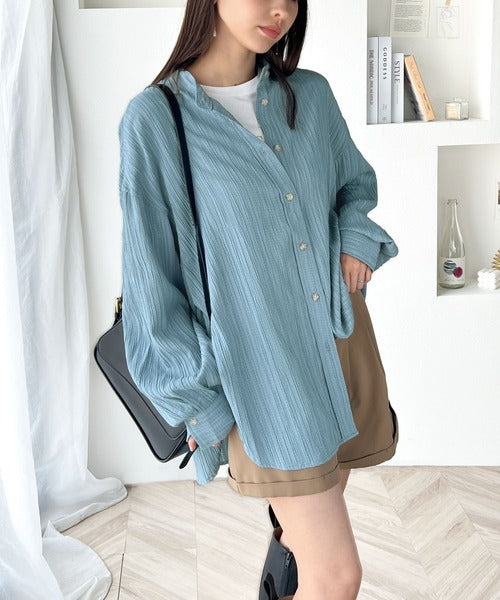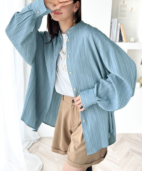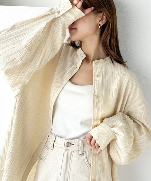ざっくり羽織るのが気分!ドビー楊柳バンドカラービッグシャツ ce1110050