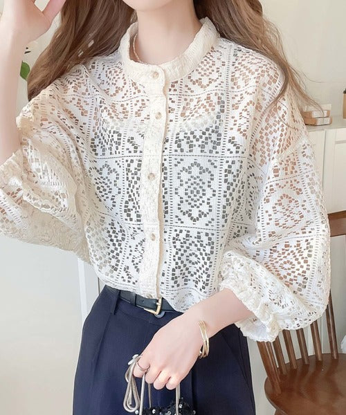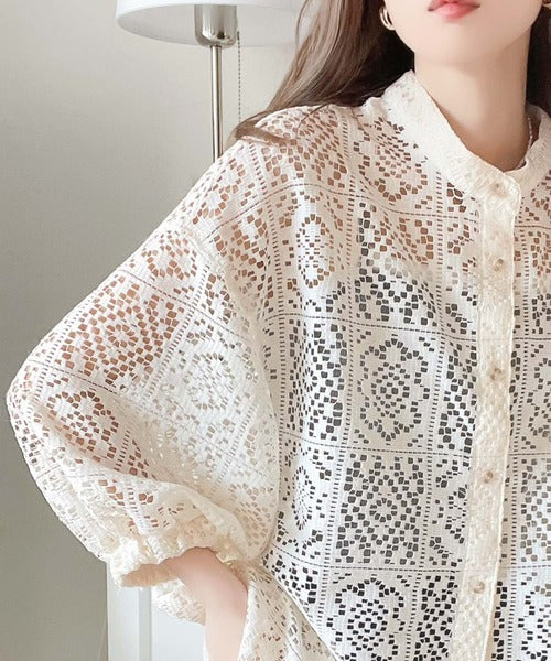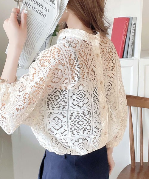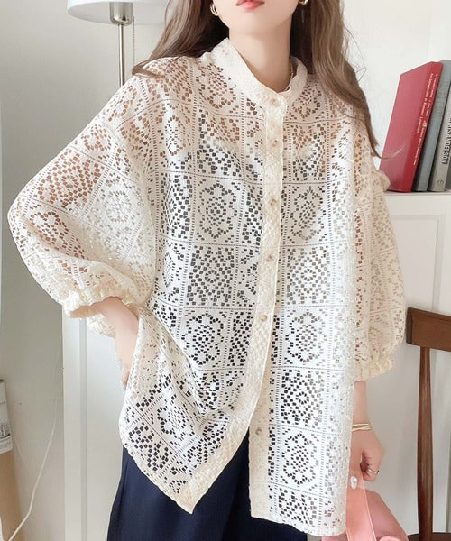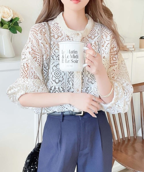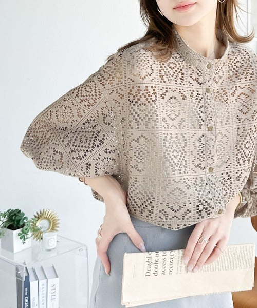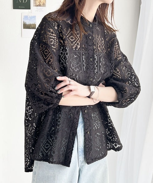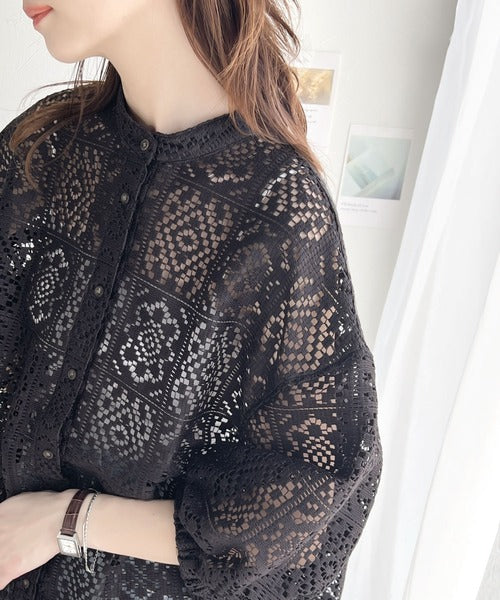 コーディネートの主役に。2wayパネルレースバンドカラーシャツ ce1110051