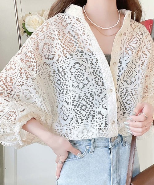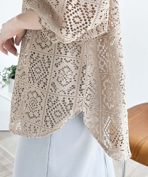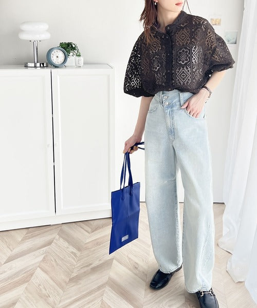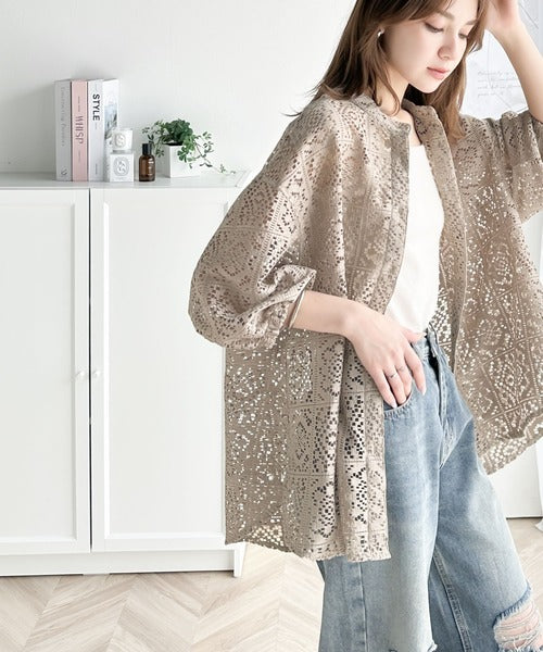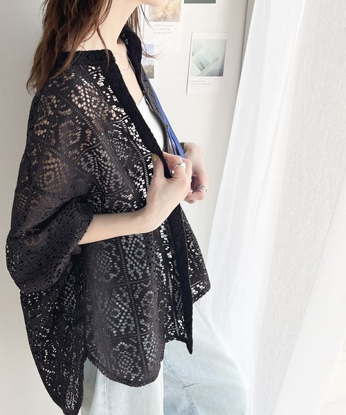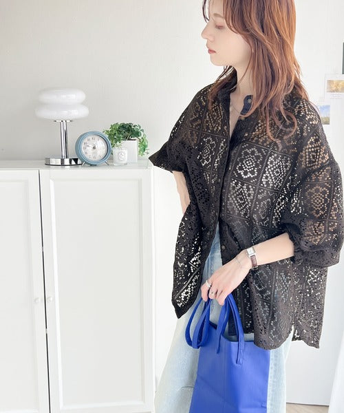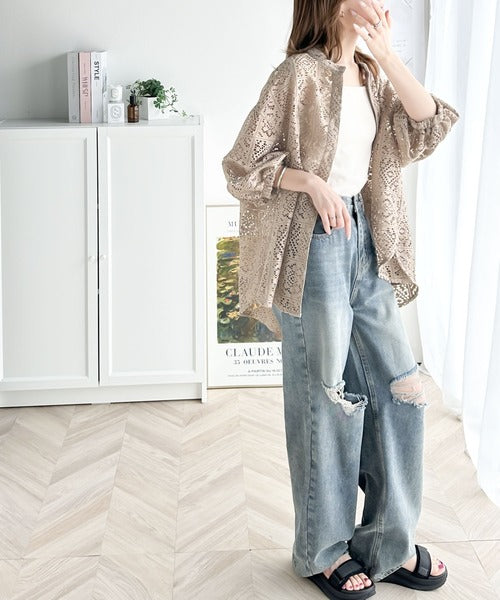 メンズライクなゆったりシルエットながら、総レースでしっかりカジュアルダウンしてくれます。