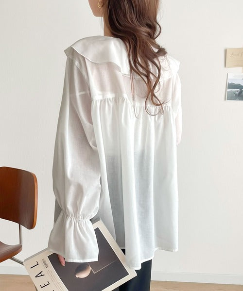 ・ふんわり揺れる襟フリルのビックカラー