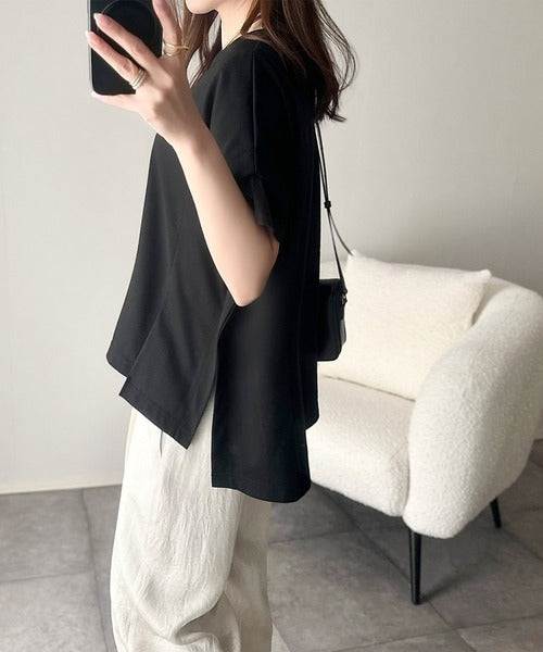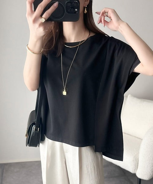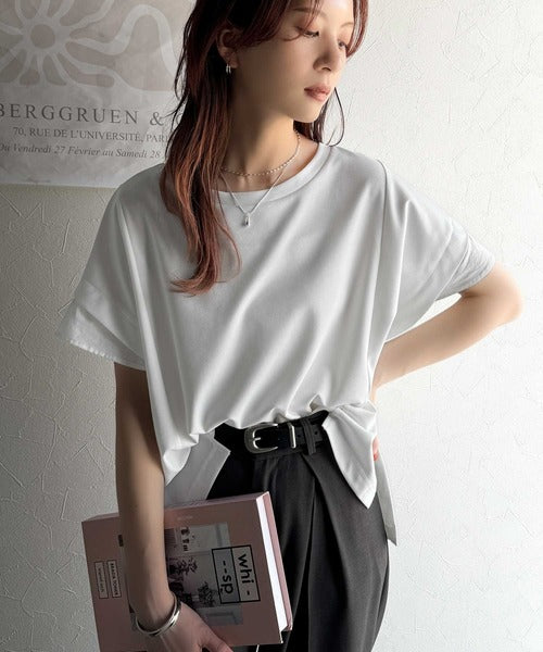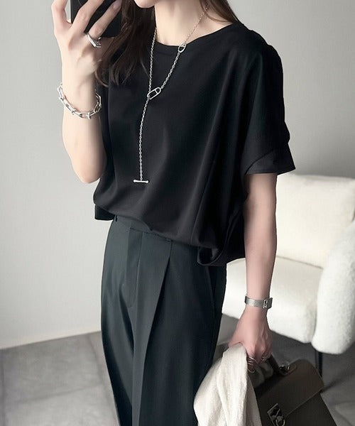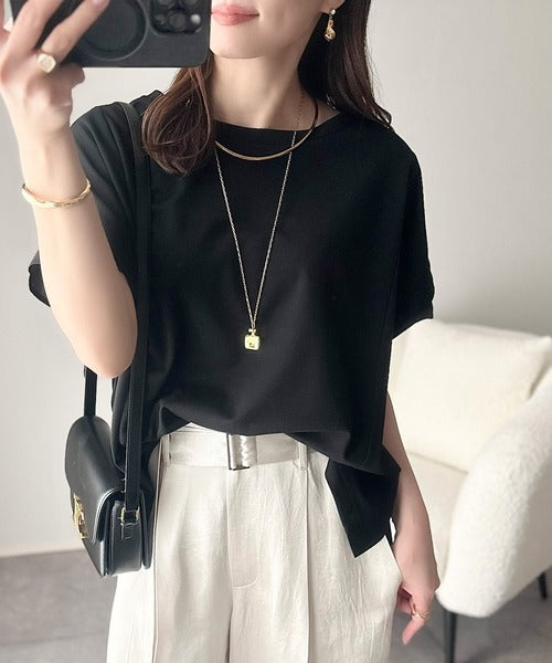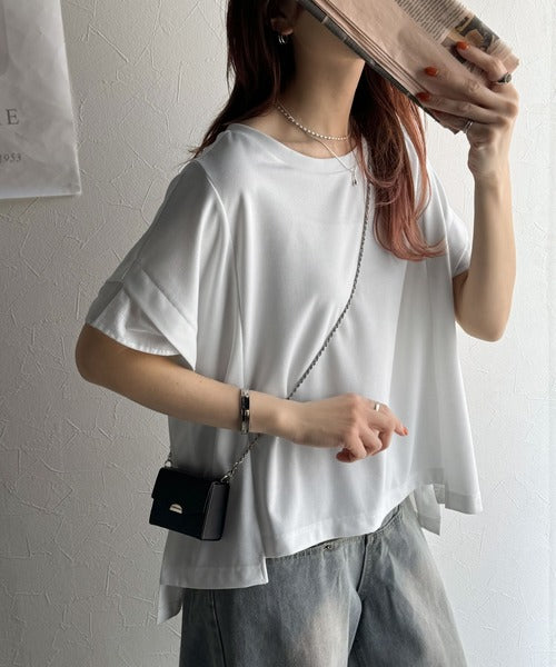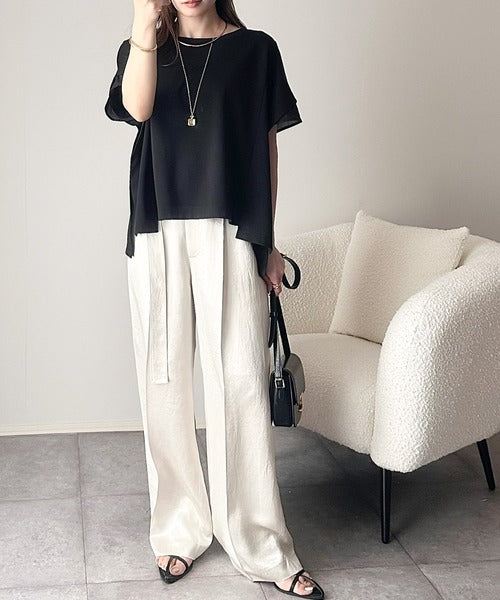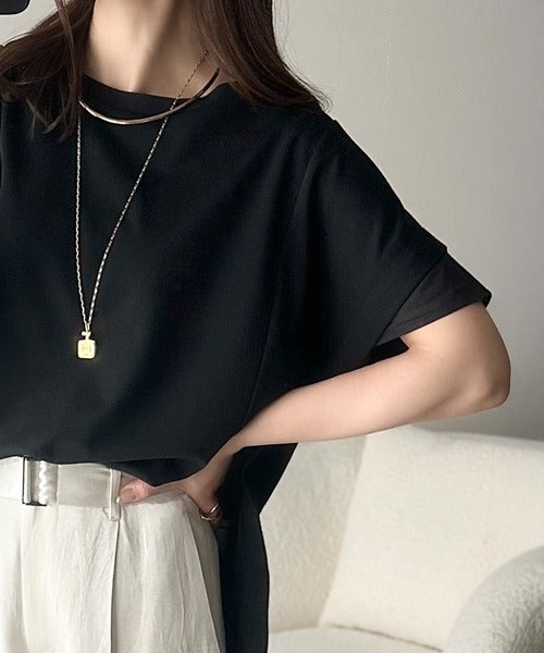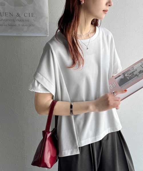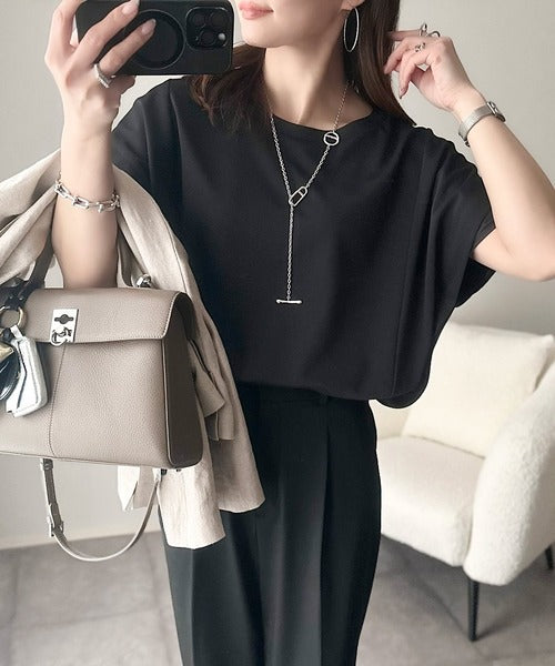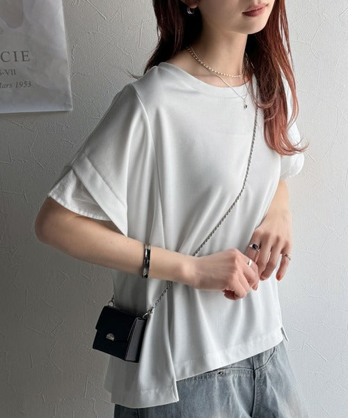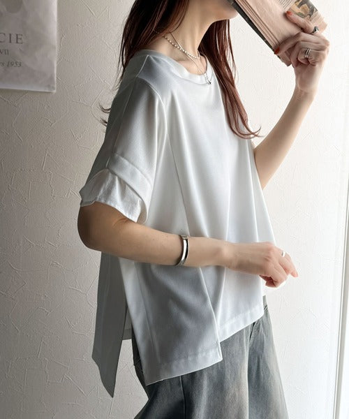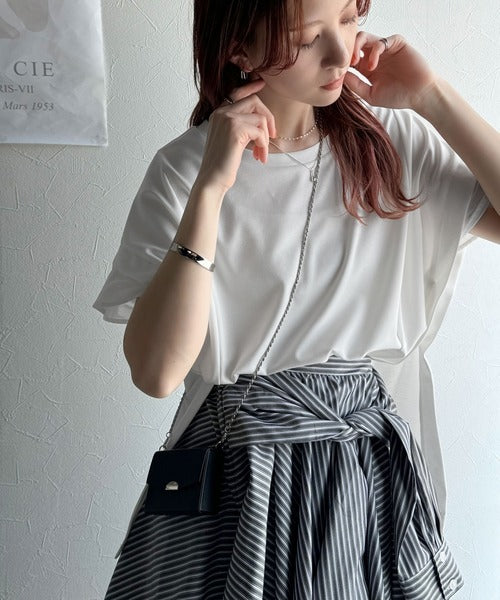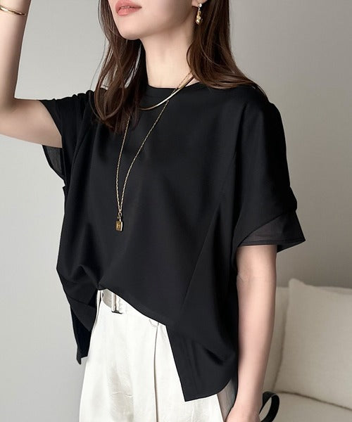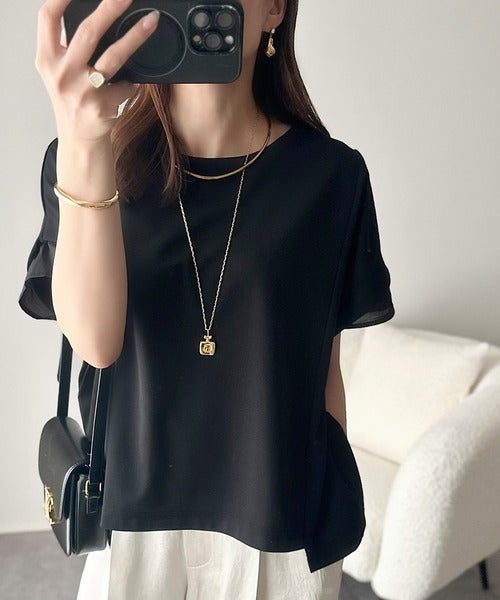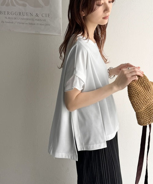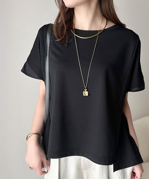 大人の女性を魅力的に引き立てる。袖口シアー切り替え 半袖 Tシャツ ce1110095
