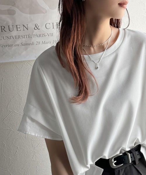 アクセサリーやバッグの色味を変えることで、一枚でも多彩な雰囲気を楽しめるこのTシャツ、あなただけのスタイルを見つけてくださいね♪
