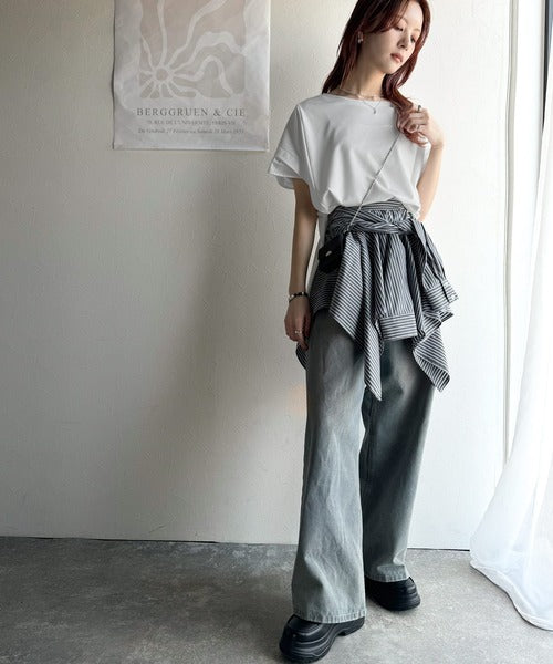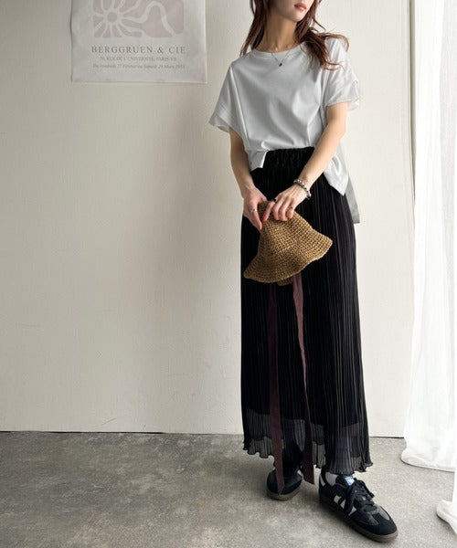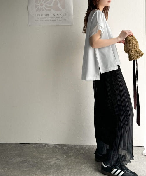 袖口シアー切り替えTシャツは、シンプルさが魅力の一枚で、豊富なスタイリングバリエーションがあります!
