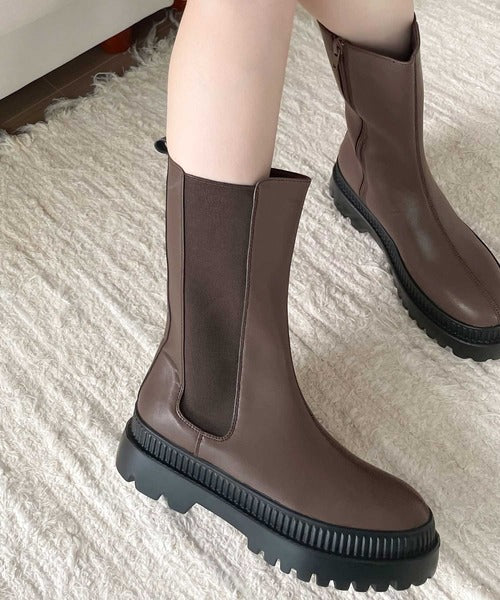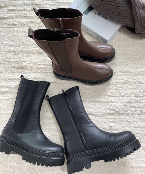 秋の最旬アイテム!サイドゴア厚底トラックソールチェルシーブーツ ce1129004