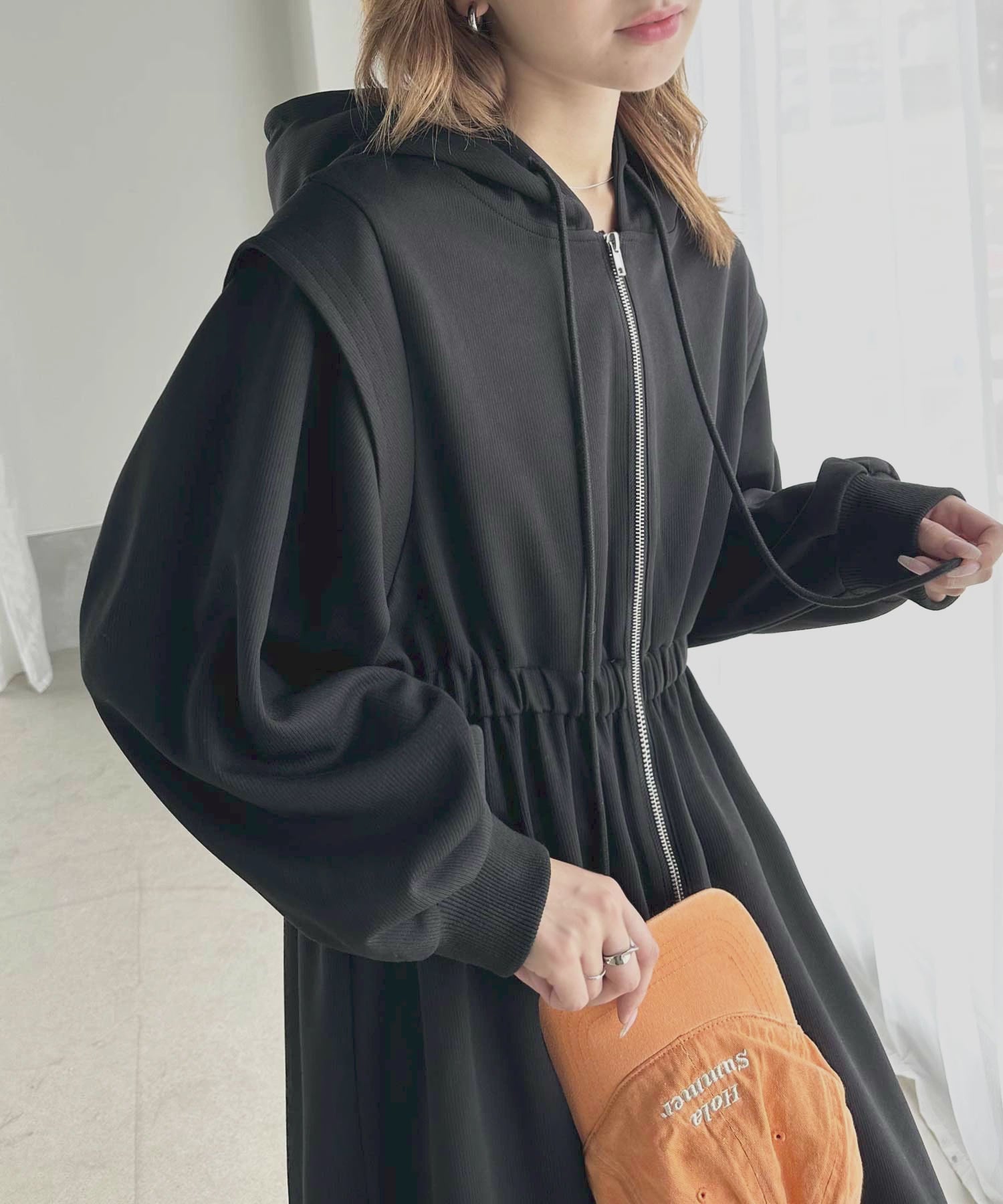 ワンピースとして着用して、ゆるっと羽織って、気軽にこなれ感を演出できる2wayのジップパーカーワンピ。