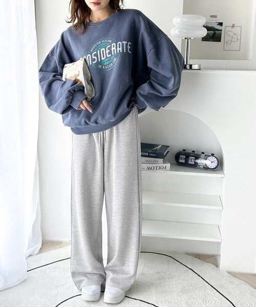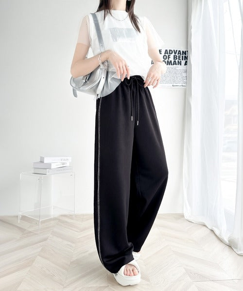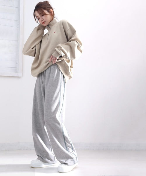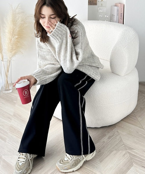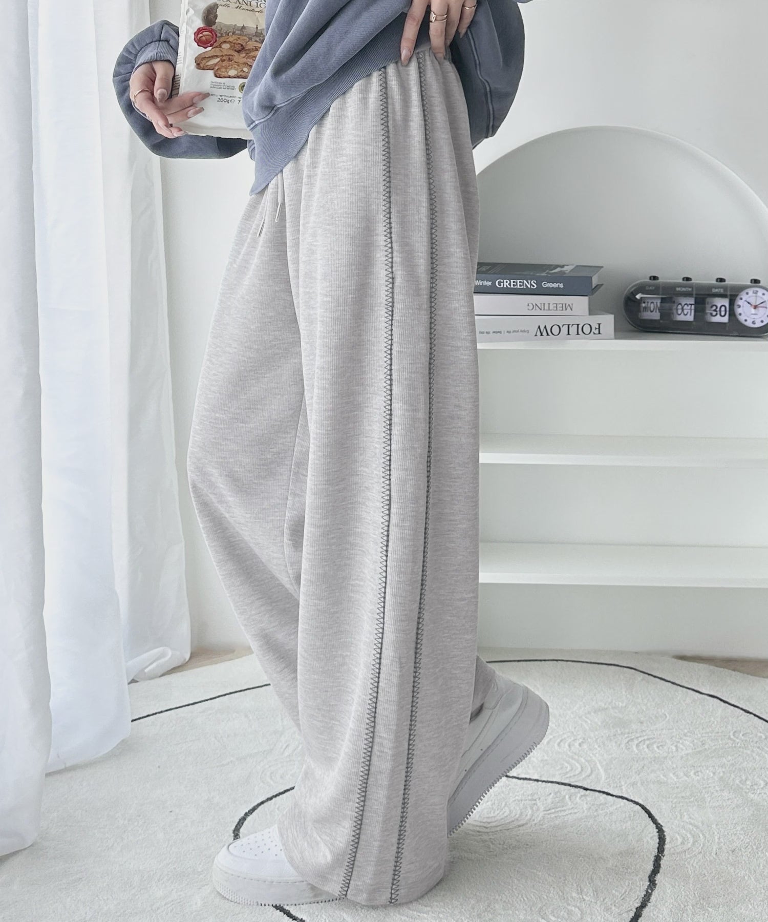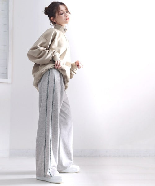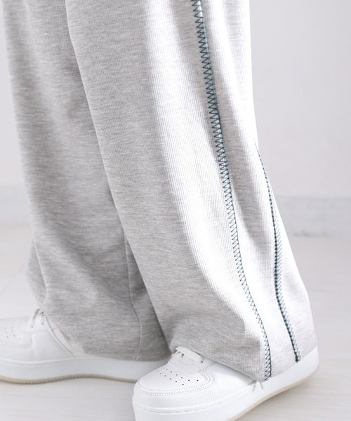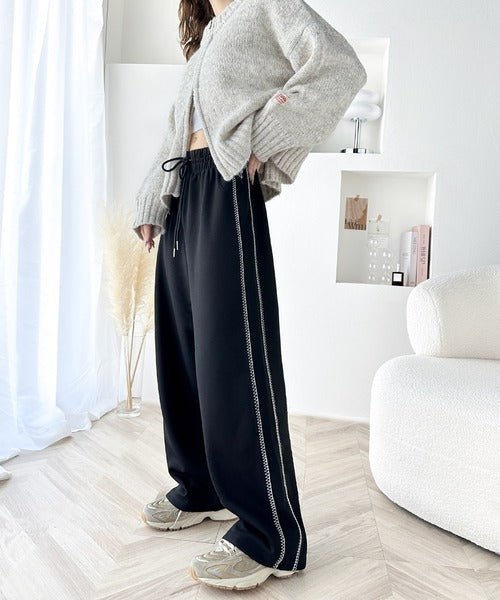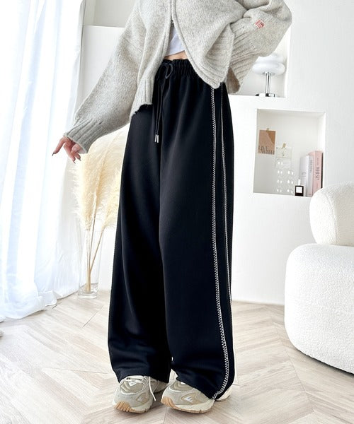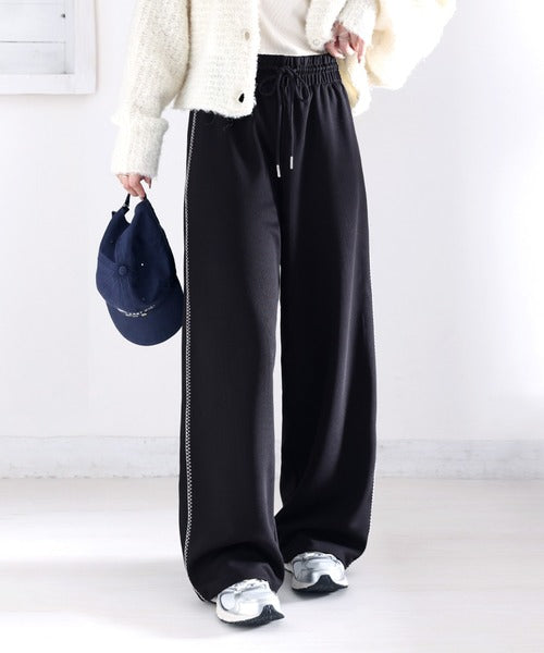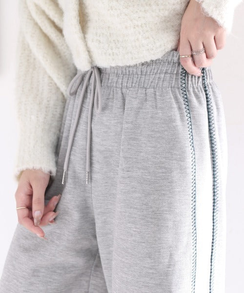 配色ステッチのサイドラインがアクセントのゆるっとパンツ。