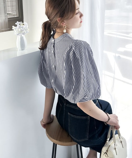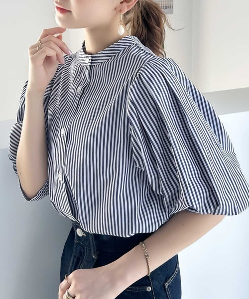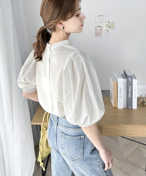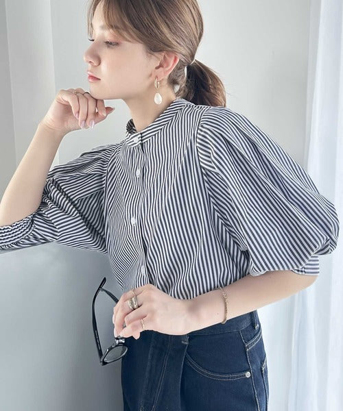 ふんわりとした袖のボリューム感がフェミニンなブラウス。