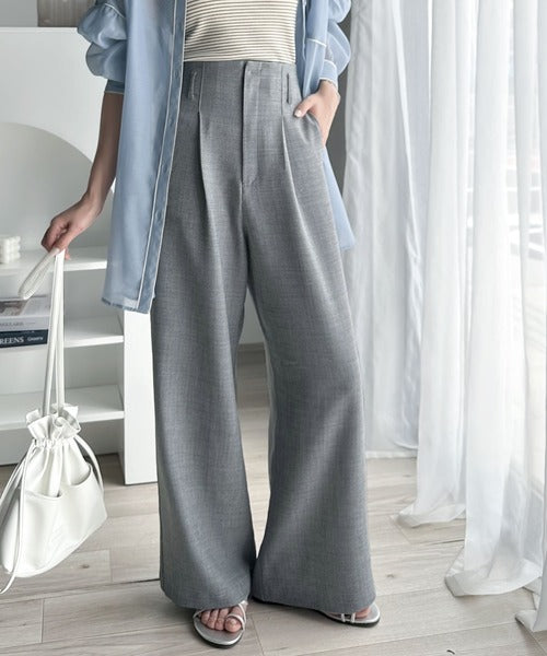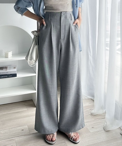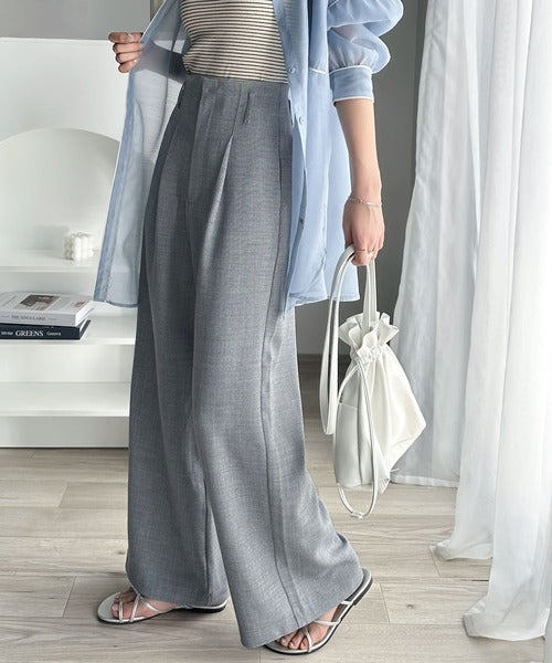さらっと美脚見せ。メランジ タックワイドパンツ ce1240010