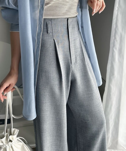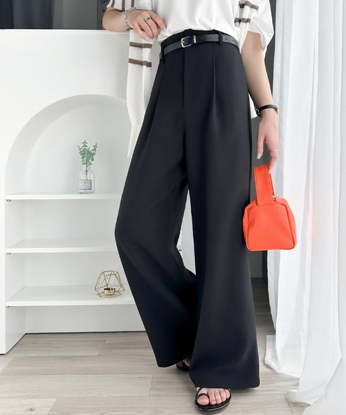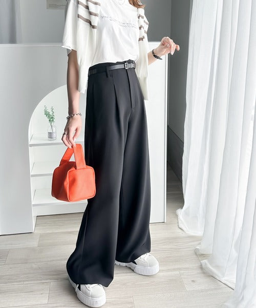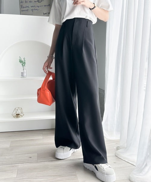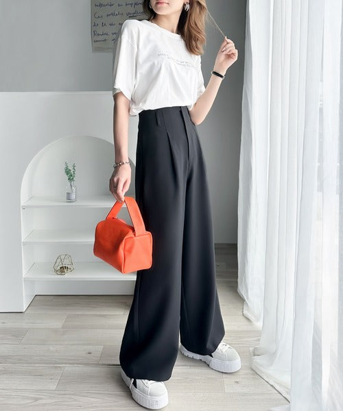 ハイウエストデザインでスタイルアップが叶うワイドシルエットのパンツ。