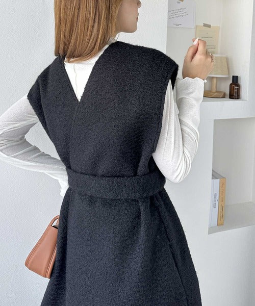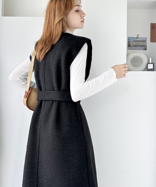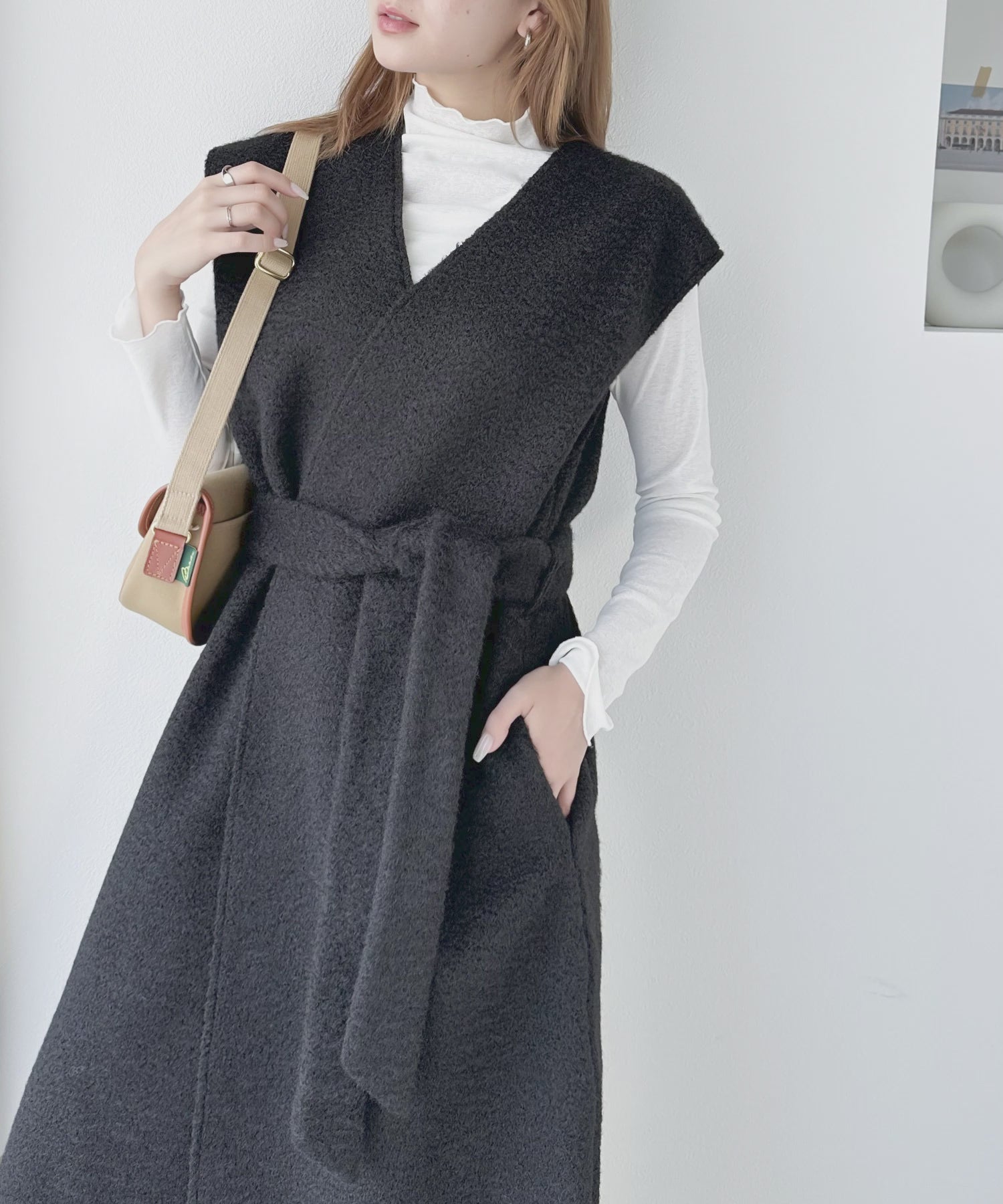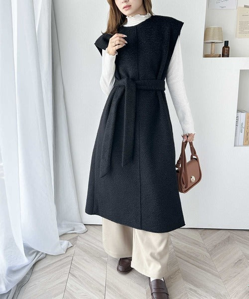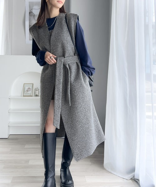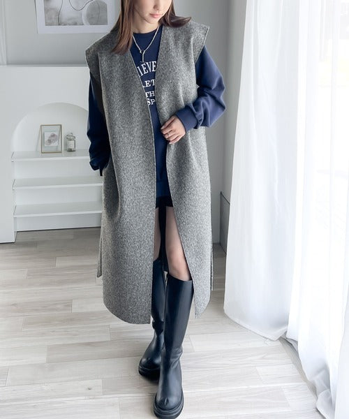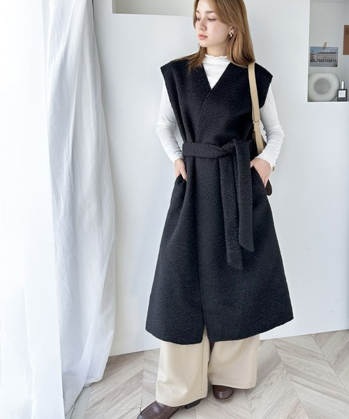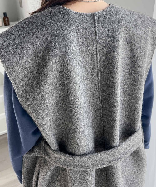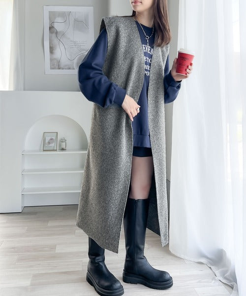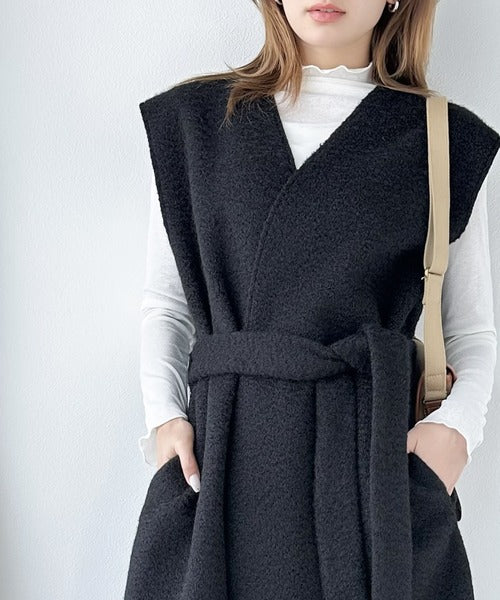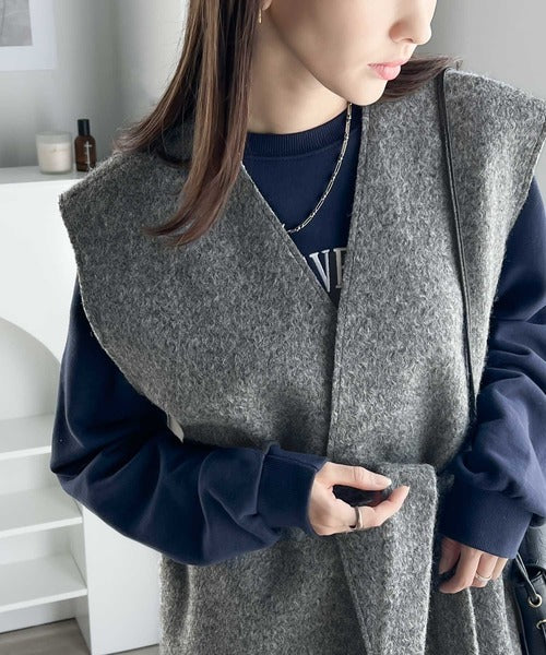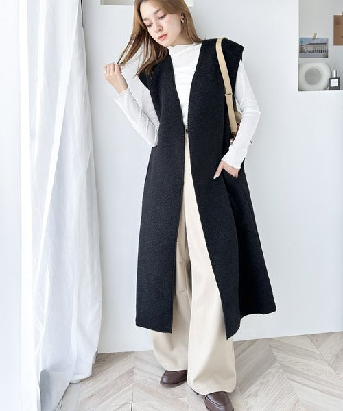 羽織るだけでこなれ感。2wayフェイクリングウール ノーカラーガウンベスト ce1240014