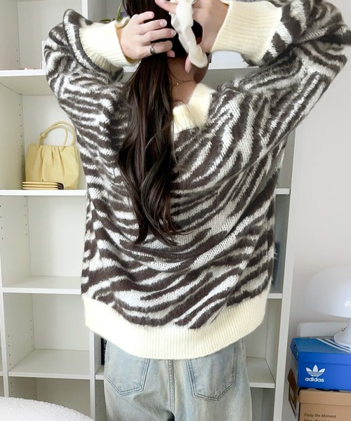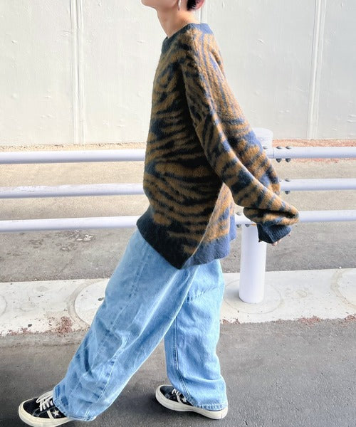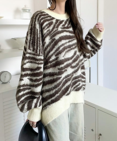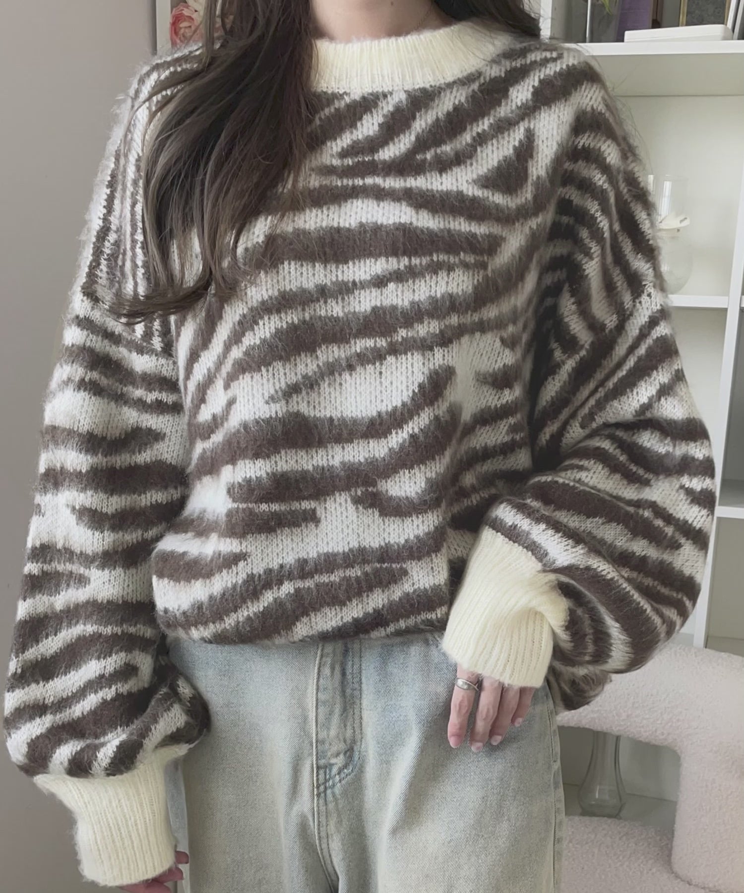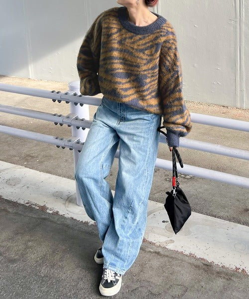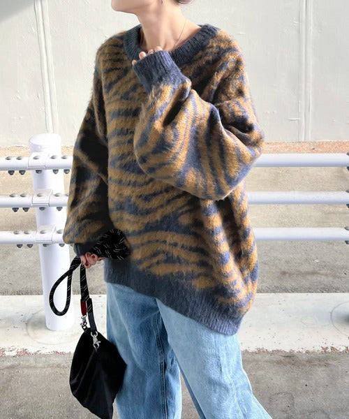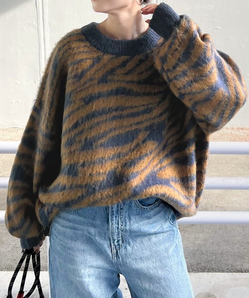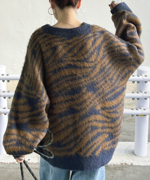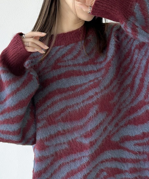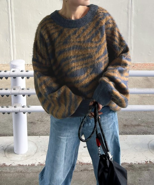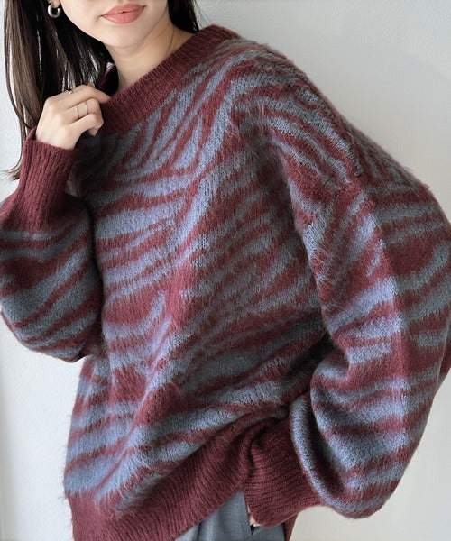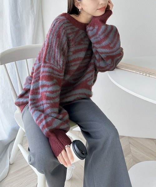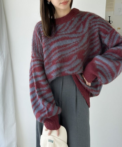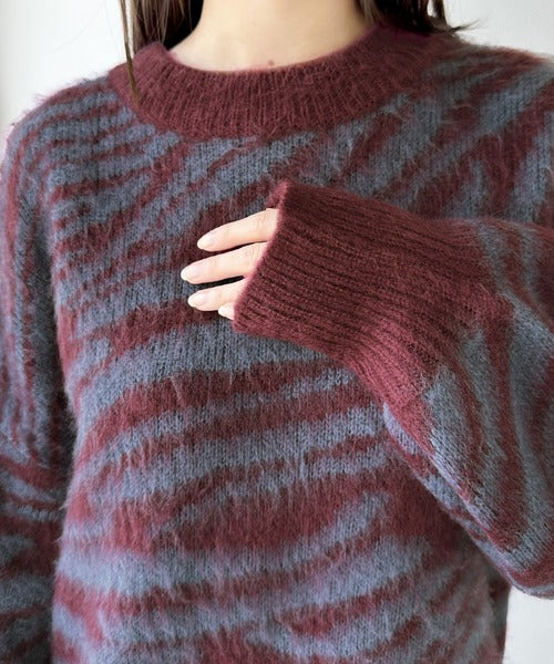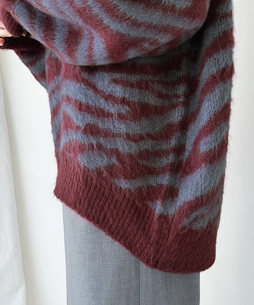 ふわふわ仕立て ぱっと目を惹くパネル柄モヘアニット ce1240025