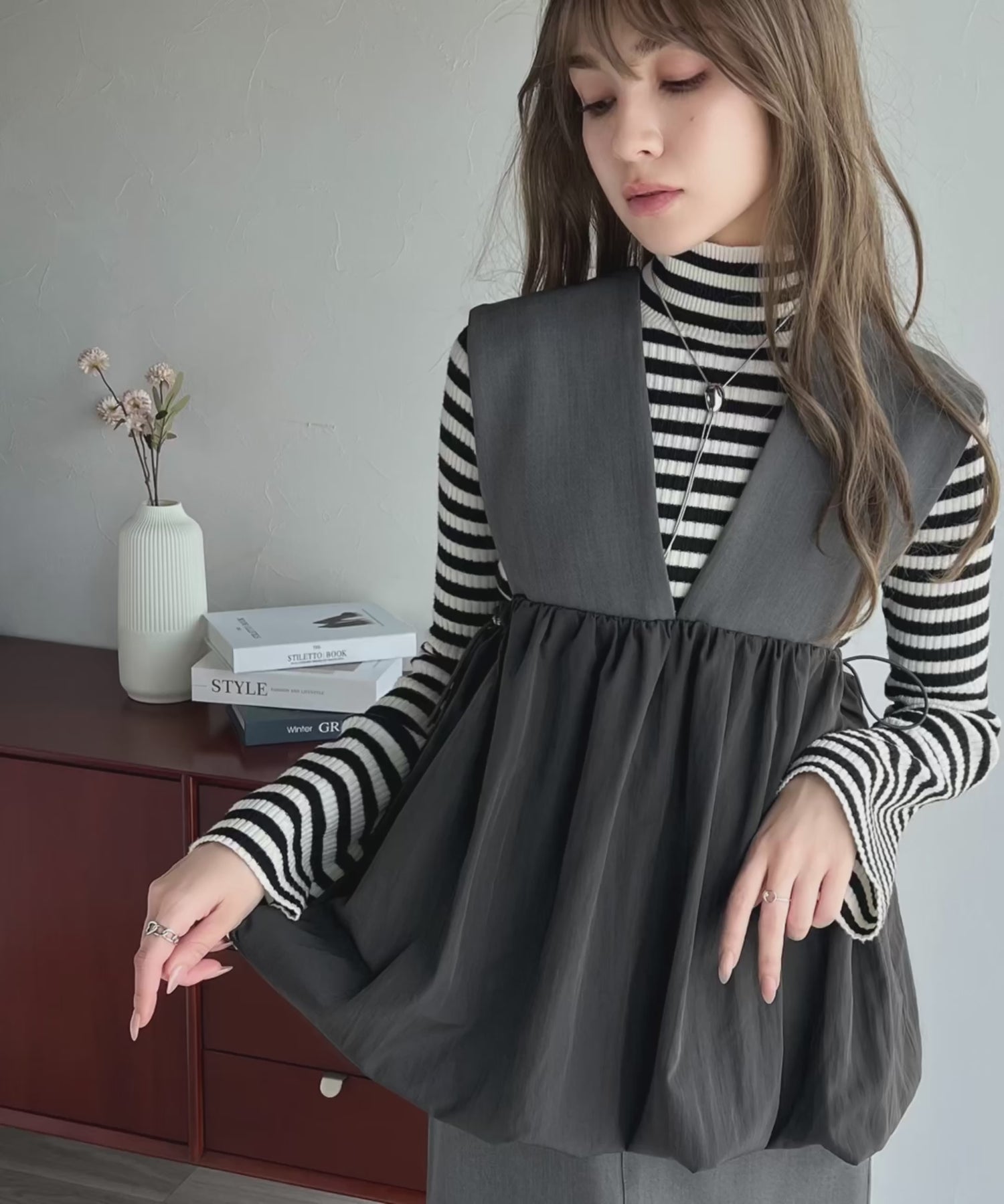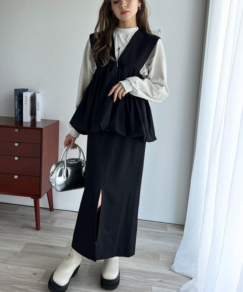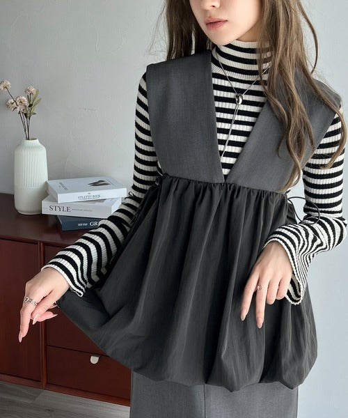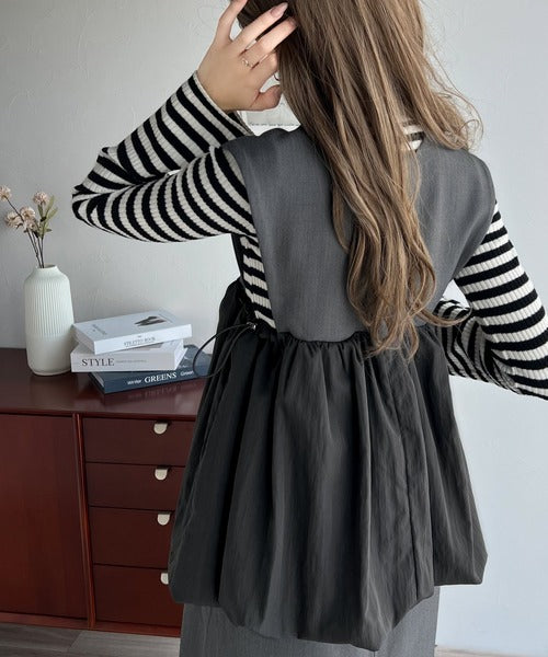 夢のように軽やかなバルーンシルエットが特徴の異素材ベストが登場!