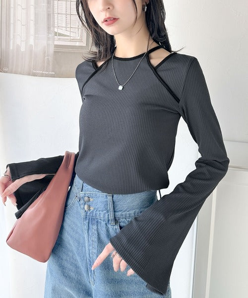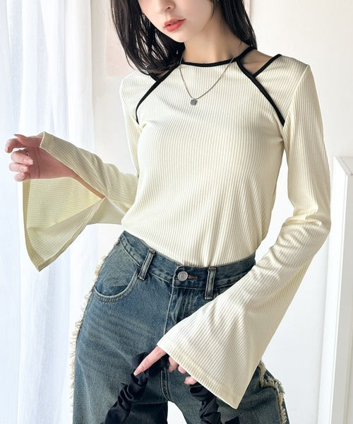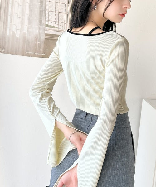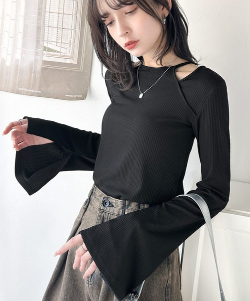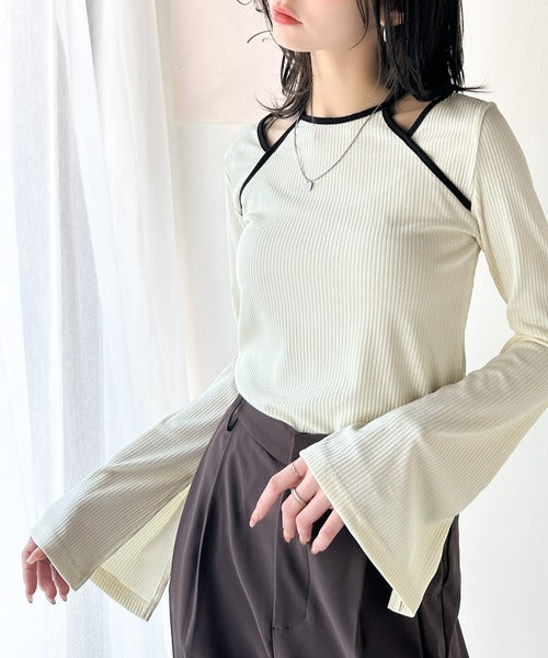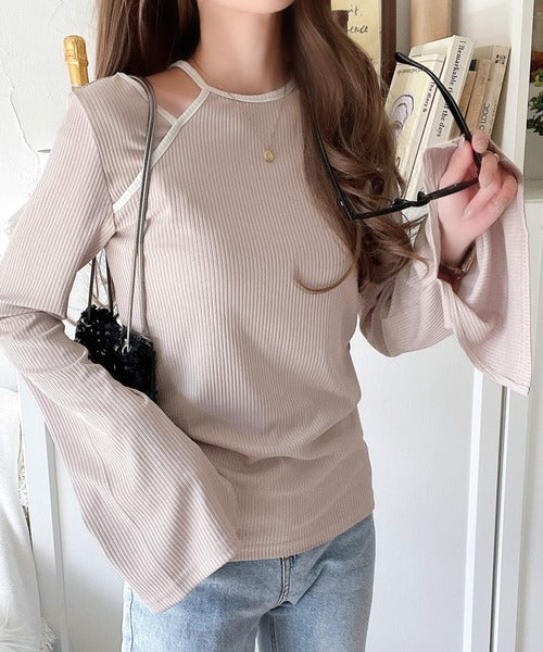 高級感漂うカジュアルコーデを実現。アメスリレイヤード風フレアスリーブトップス(長袖) ce1240058