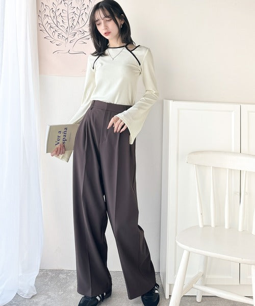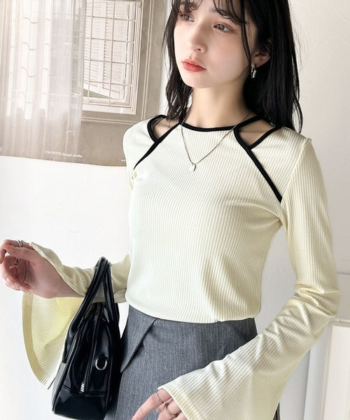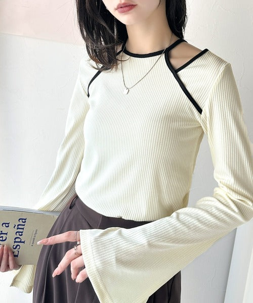 デコルテを魅せるカットが、着痩せ効果を与え、どんなボトムスとも相性抜群。