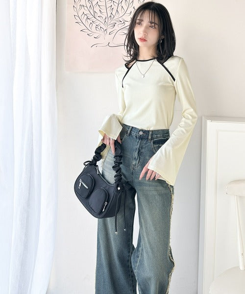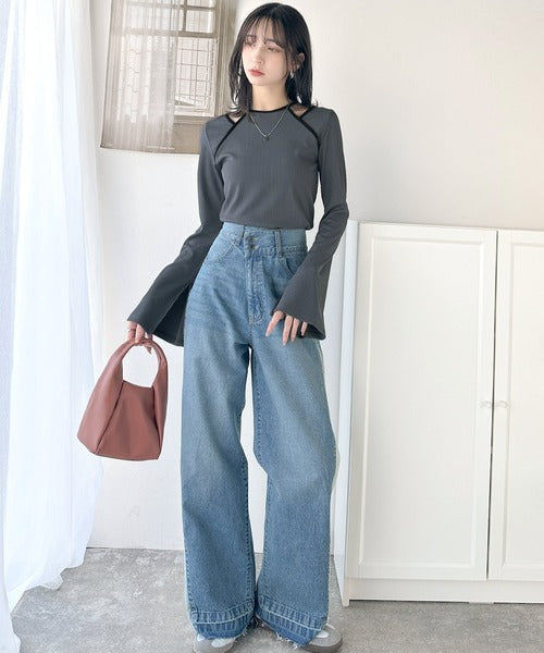 このアメスリレイヤード風フレアスリーブは、デニムやワイドパンツを合わせて、カジュアルでありながらも洗練されたスタイルに。