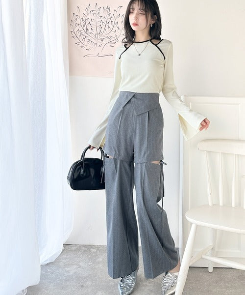 ワイドパンツやボリューム感のあるスカートに合わせて春夏は一枚でコーディネートできるのはもちろん、