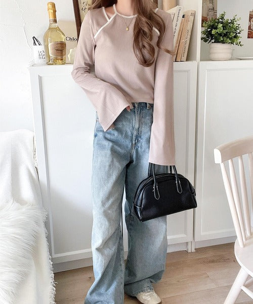 このアメスリレイヤード風フレアスリーブは、デニムやワイドパンツを合わせて、カジュアルでありながらも洗練されたスタイルに仕上がります。