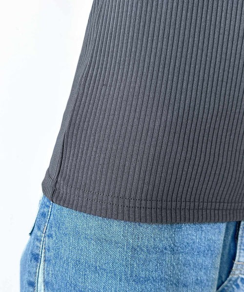 リブ素材が体に程よくフィットし、肌触り、窮屈感のないやさしいフィット感が魅力のアイテム。