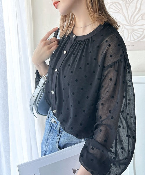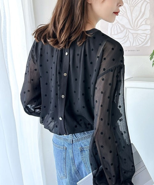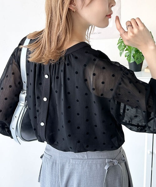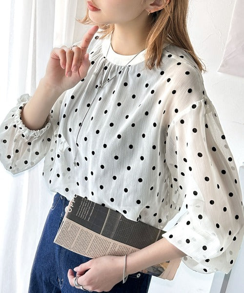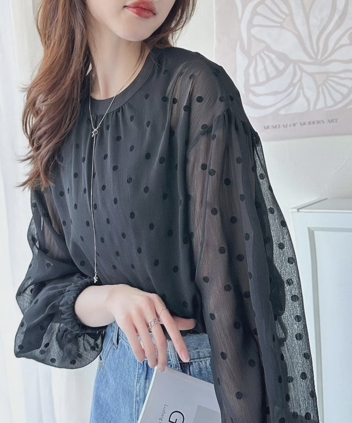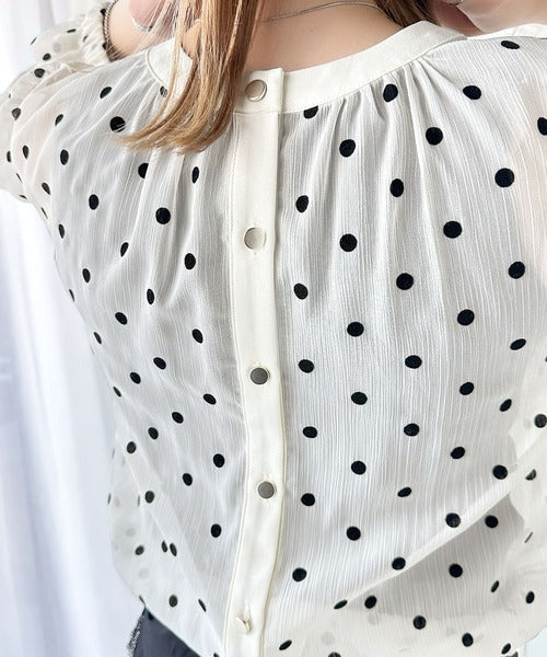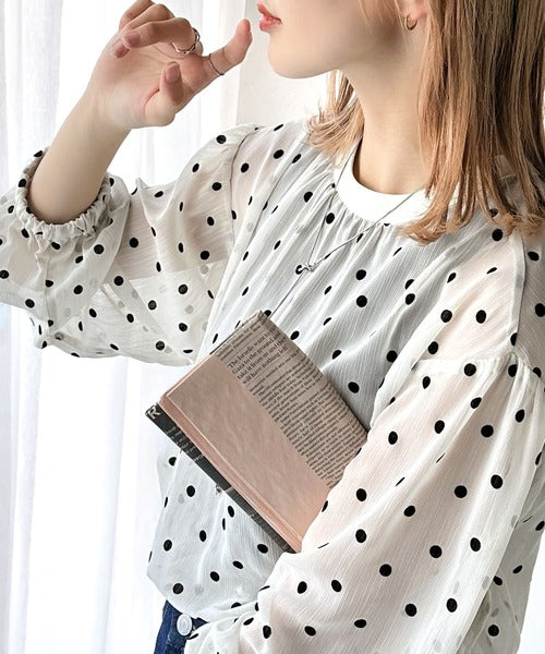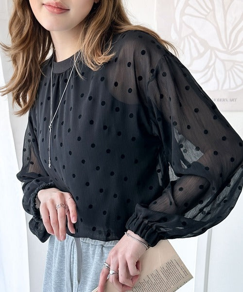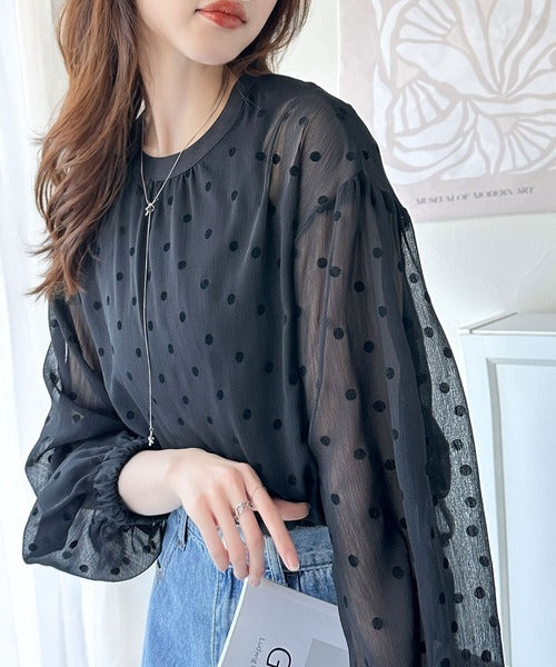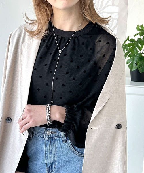 ふんわり可愛いが魅力!前後2wayフロッキードットプリント楊柳シアー素材ブラウス(長袖) ce1240080