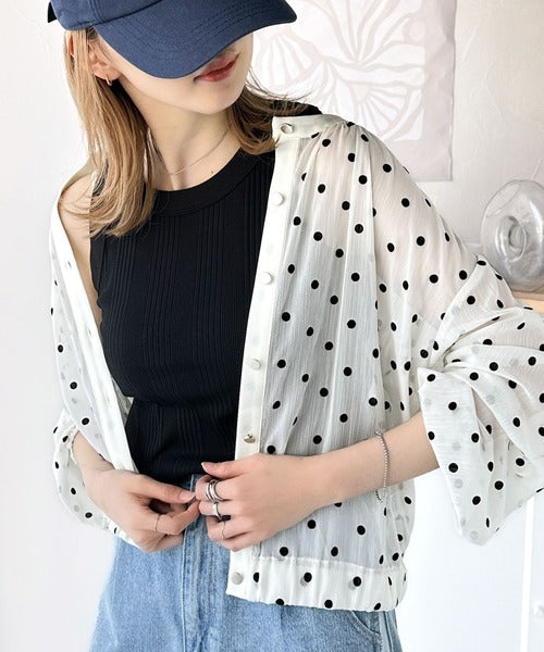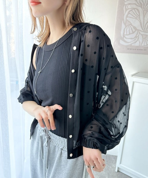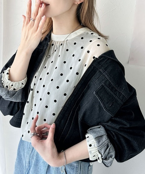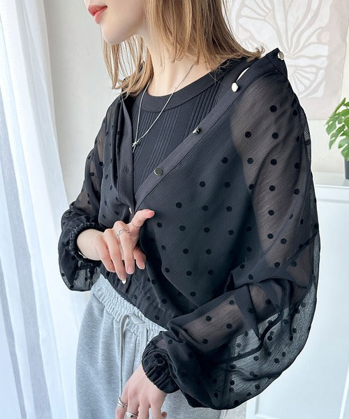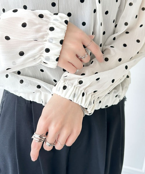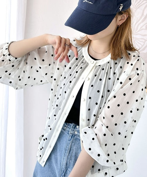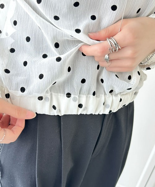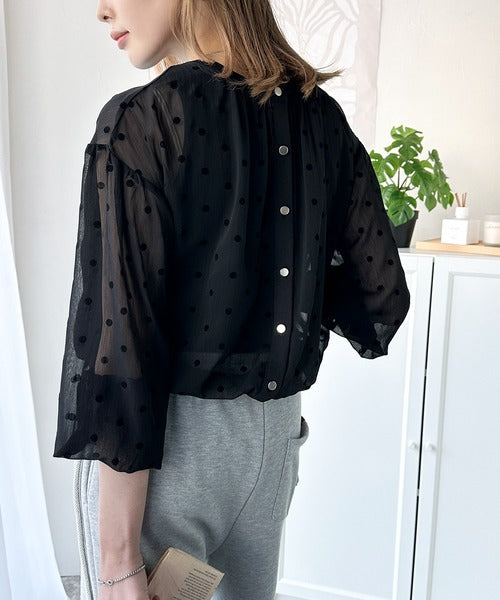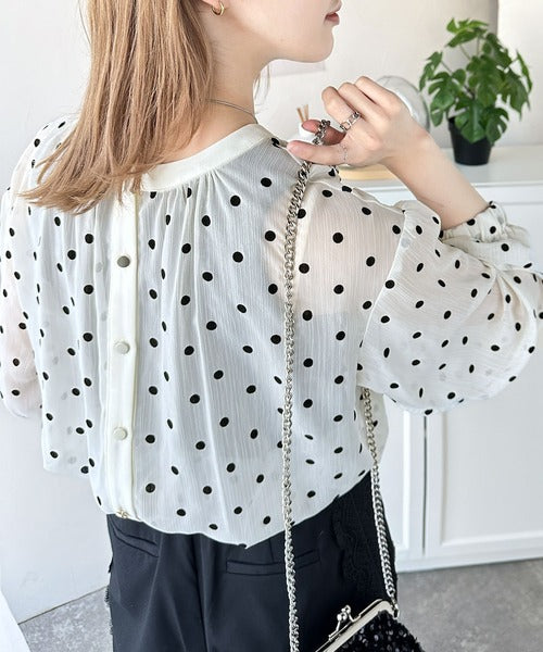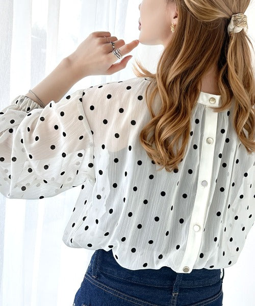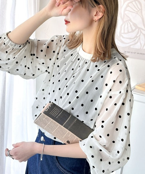 ふんわり可愛いが魅力!前後2wayフロッキードットプリント楊柳シアー素材ブラウス(長袖) ce1240080