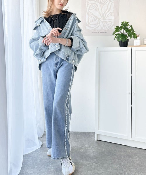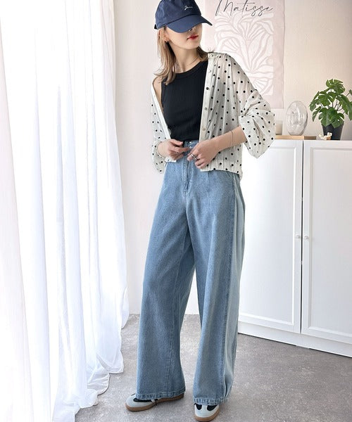 その日の気分に合わせてデニムやフレアパンツを合わせてもOK◎