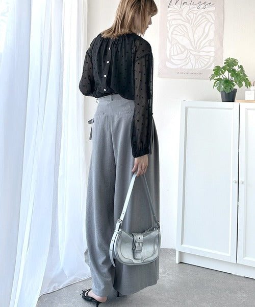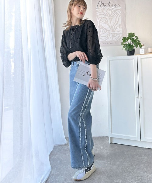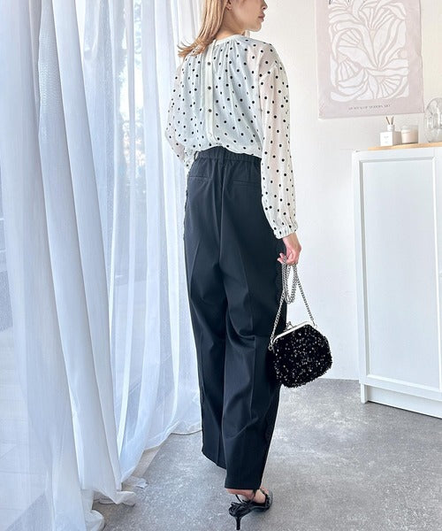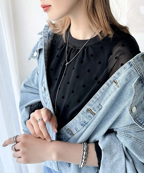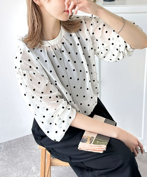 軽やかなシアードット素材を使用したクルーネックブラウス。