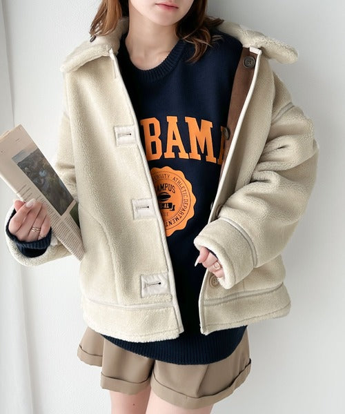 細かいシープボアと上質な光沢のスエードを組合わせた1枚です!