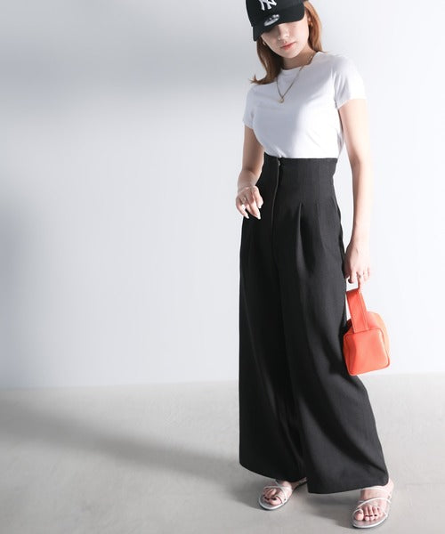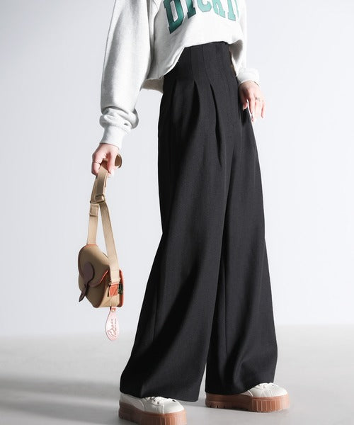 ハイウエストデザインでスタイルアップが叶う美シルエットワイドパンツ。