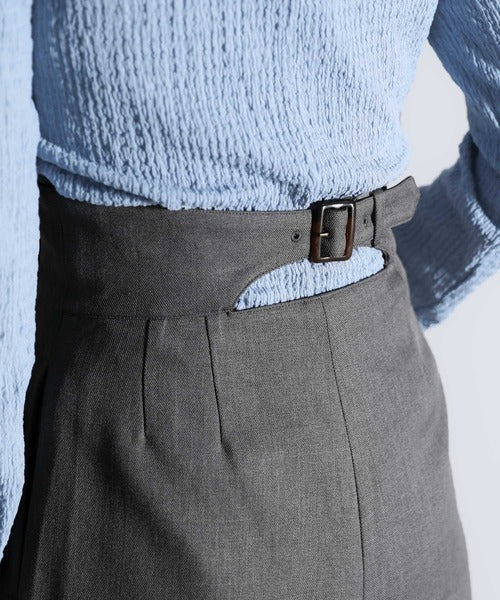 背面のカットアウト×ベルトデザインが普段のコーデにスパイスを加えてくれます。
