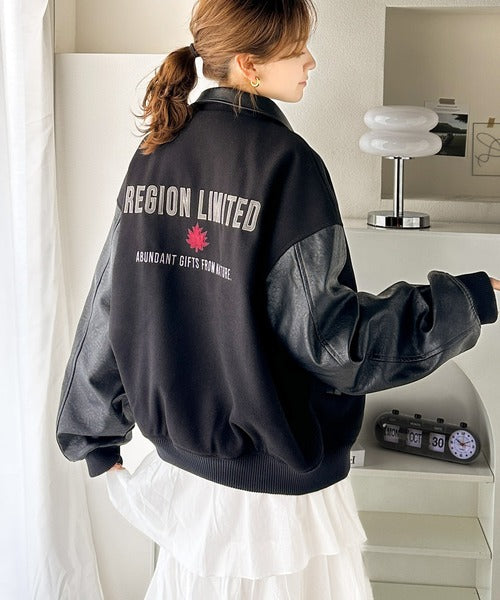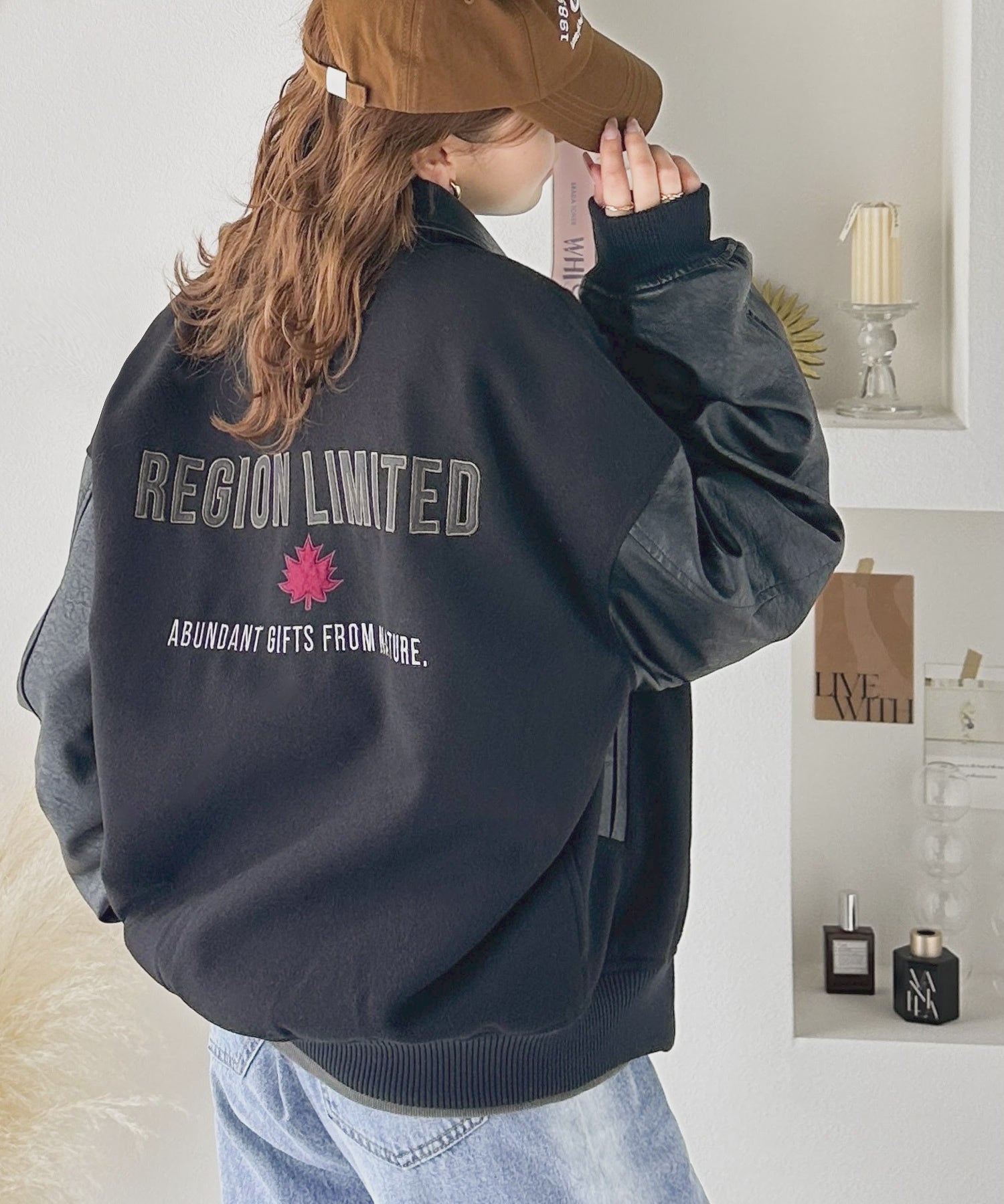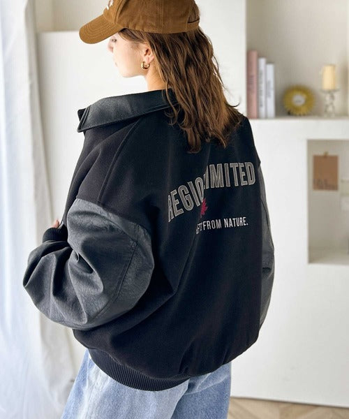 1点投入でオシャレ見え。バック刺繍 メルトンレザードッキングスタジャン ce1260068