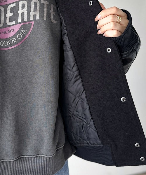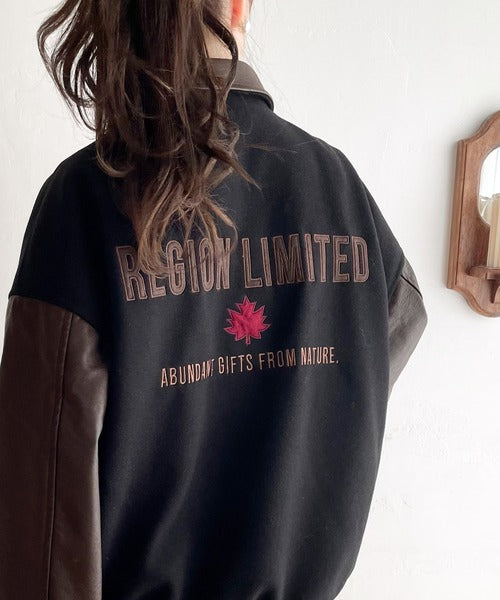 重厚感漂う襟と袖のレザー素材に暖かいメルトンジャージ素材をドッキングしたデザインは、