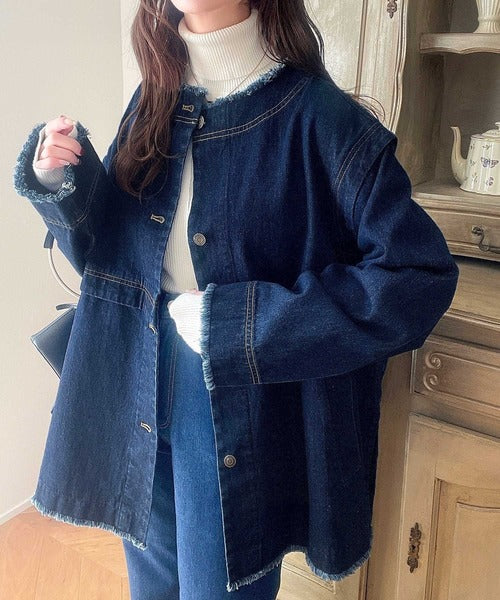 春先の旬顔。フリンジ切替デニムジャケット ce1260083