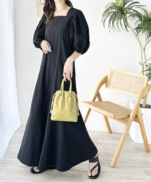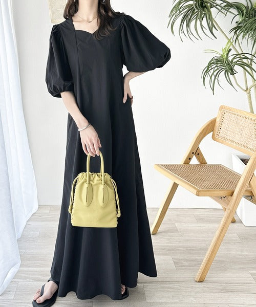 贅沢にあしらったボリューム袖がポイントのマキシワンピ。