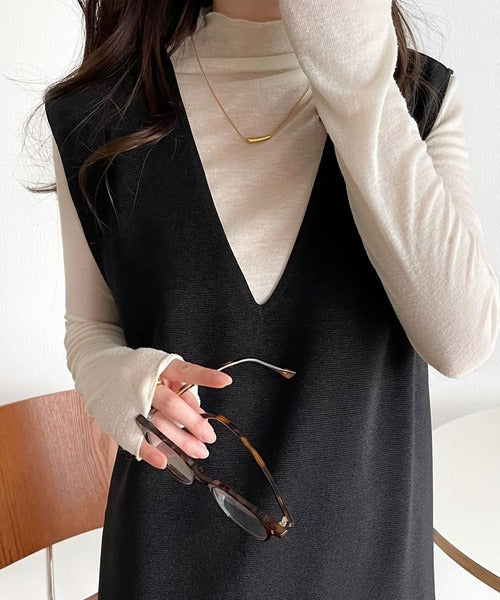 長袖カットソーやハイネックを合わせた秋冬コーデはもちろん、