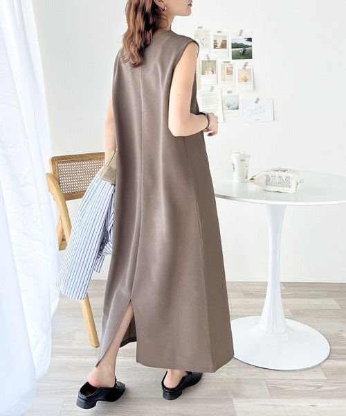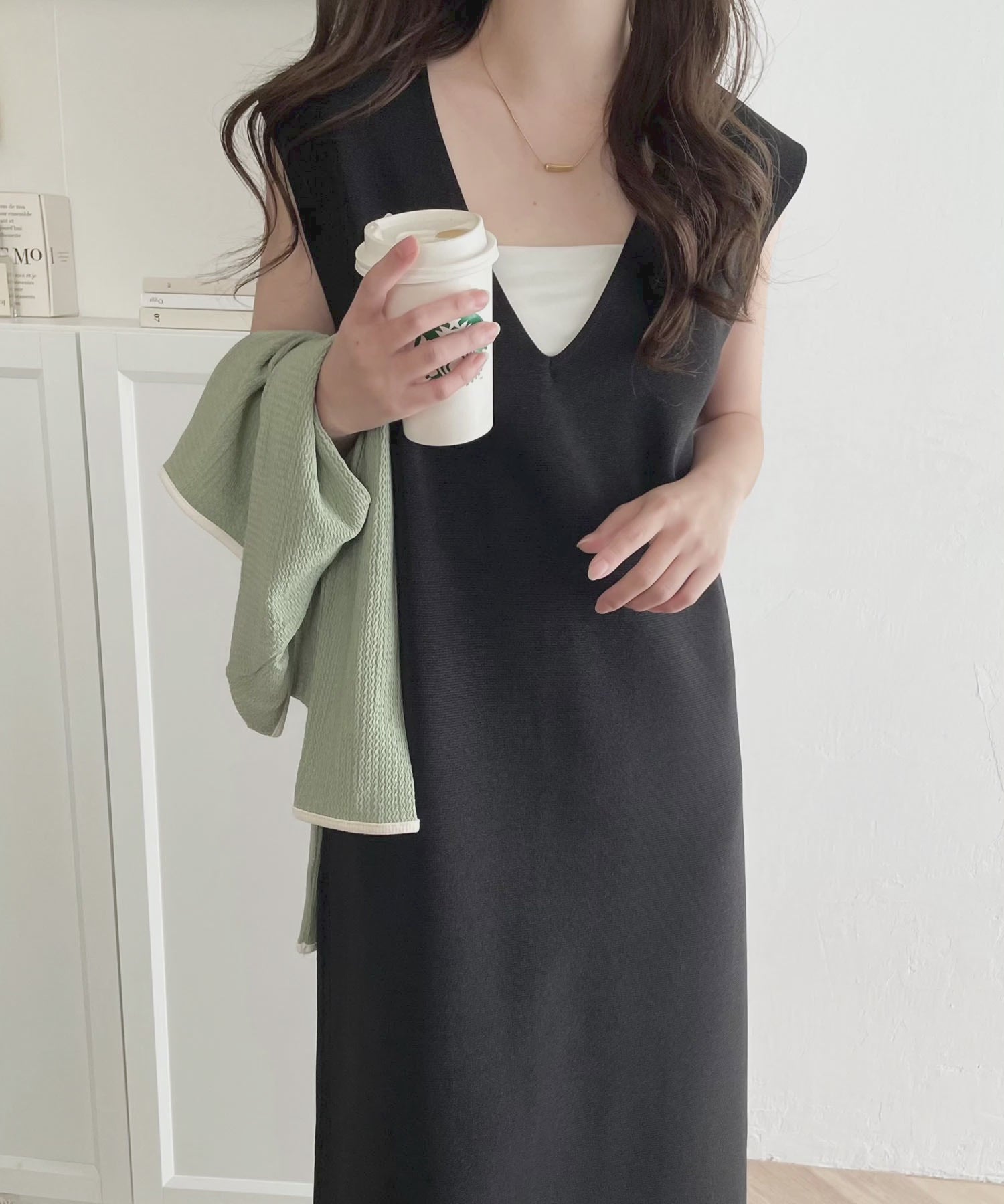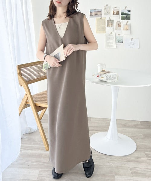 質感にうっとり。前後2way 光沢リップル Vネックワンピース ce1260106