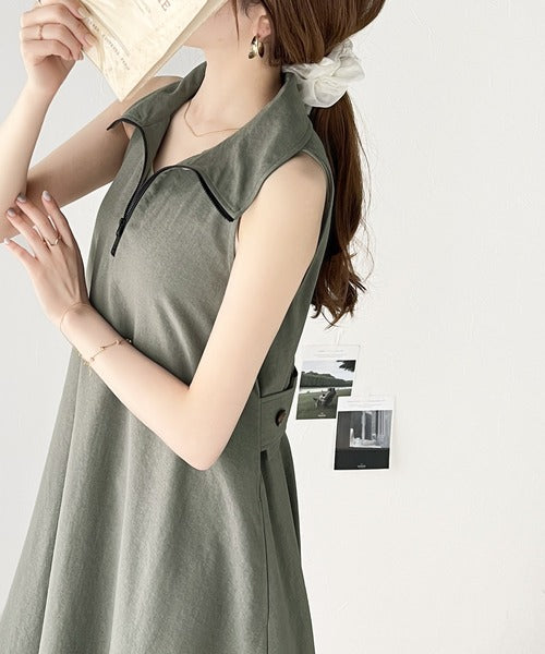 旬の配色ハーフジップがデザインポイントのバックベルトワンピース。