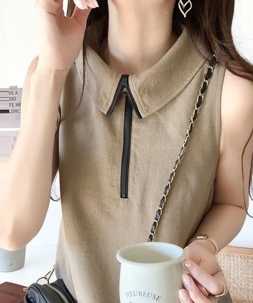 ジッパーの開閉や折り返し、深めVネックにするなどその日の気分でアレンジ可能。