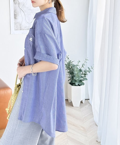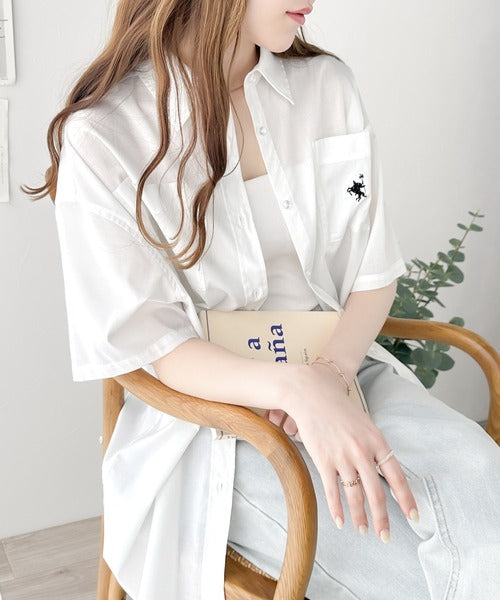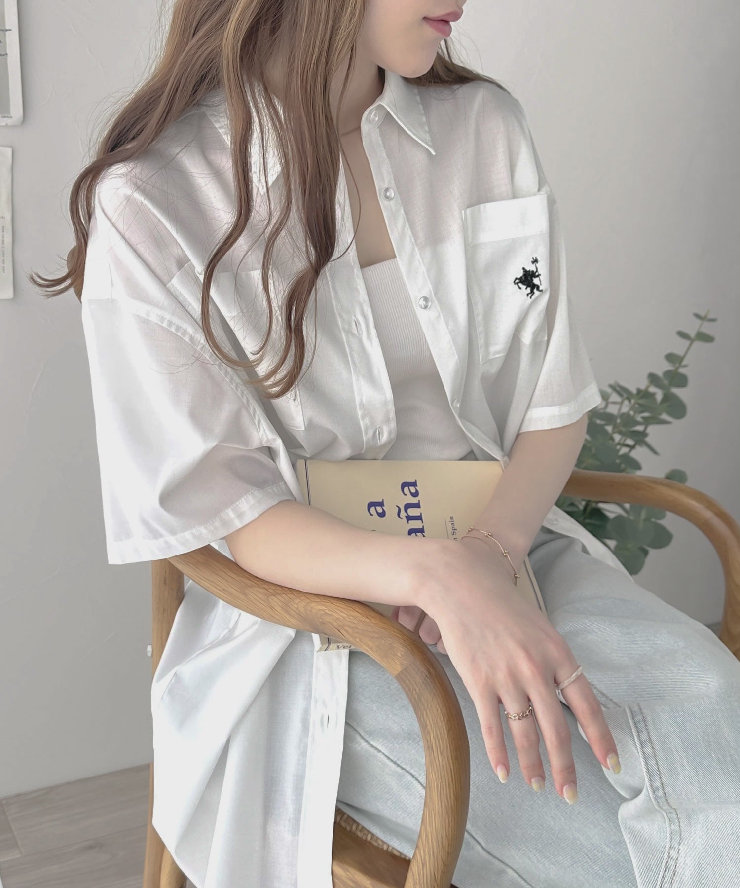 トレンドライクなオーバーサイズと胸のワンポイント刺繍がポイントです。