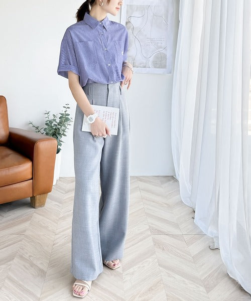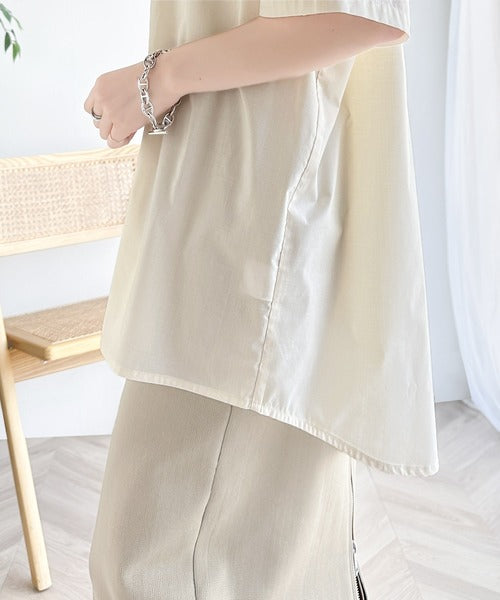 しわになりにくく肌触りのいい生地は1枚でサマになるうえ、体型カバー効果も◎