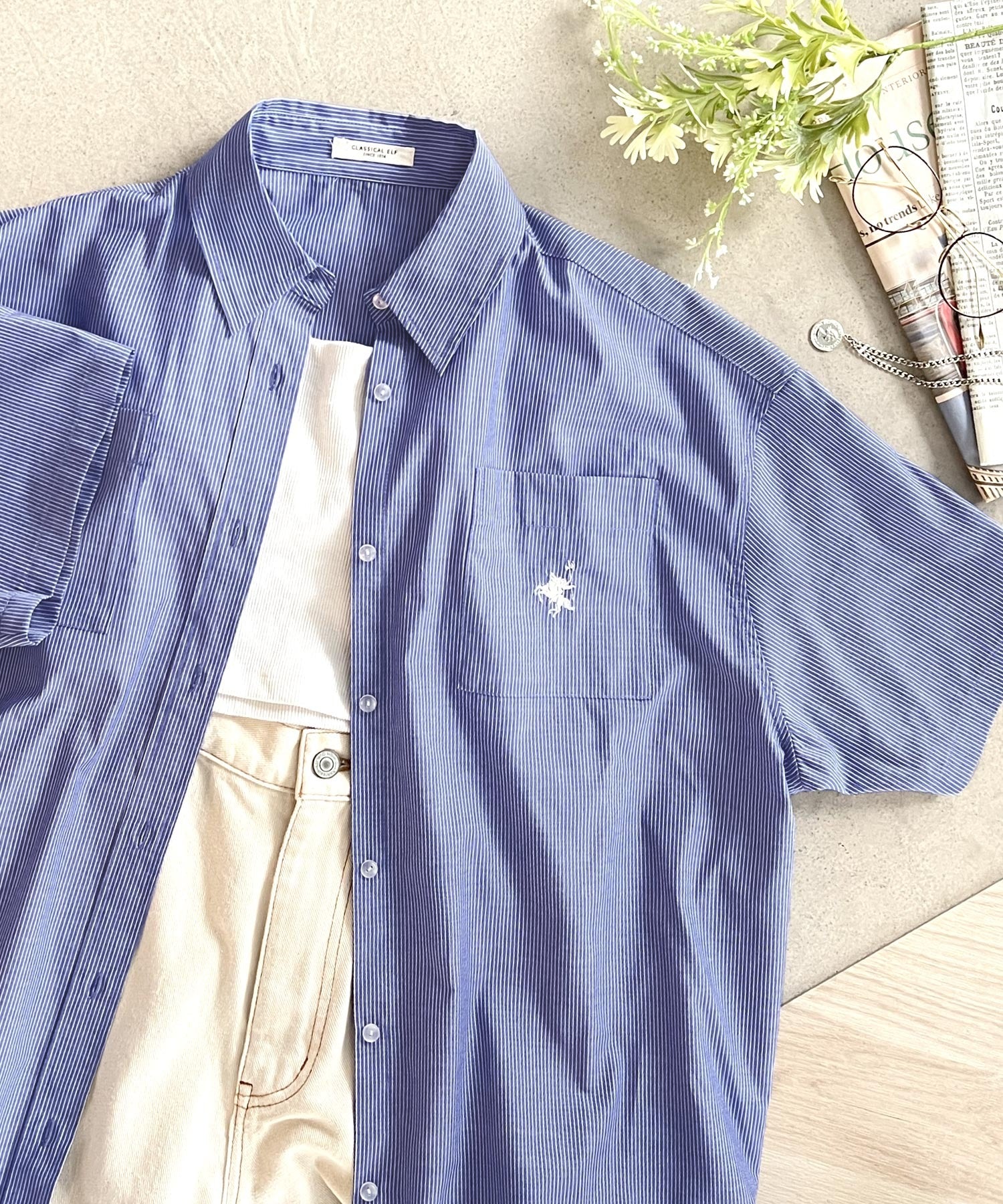 ラフに羽織るだけでサマになる。ダブルポケット胸刺繍シャツ ce1260195