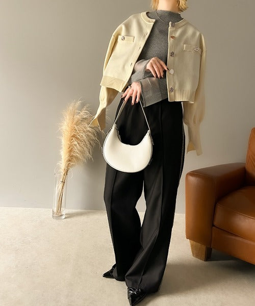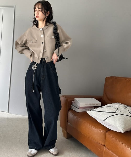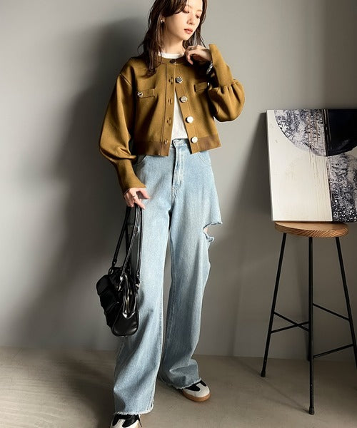 ショート丈カーディガンで、大人のエレガンスを楽しむ休日スタイルに♪