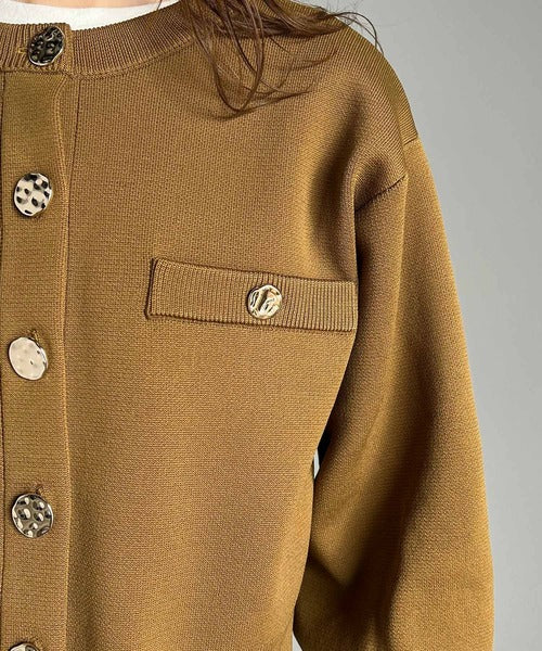 短丈軽量変型ボタンカーディガンは、ゴールドボタンが上品なアクセント!